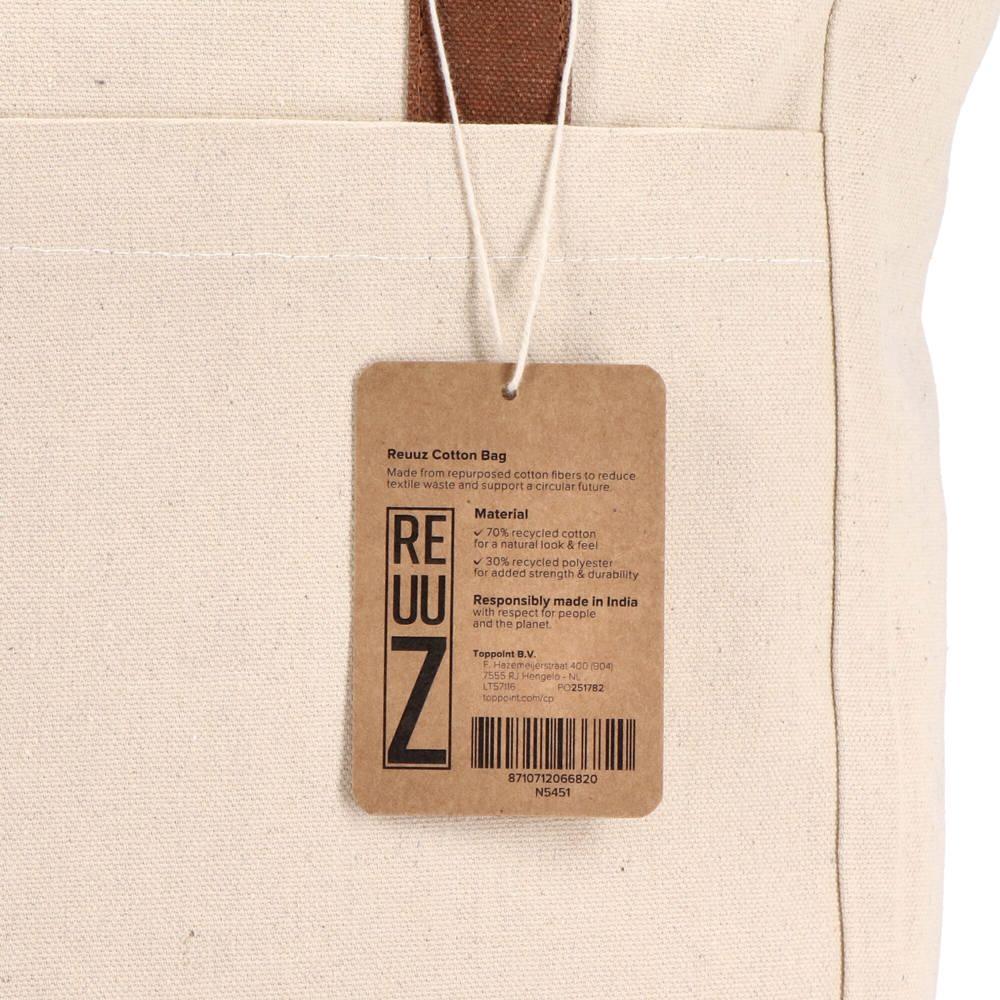 Elevate your promotional giveaways with this sturdy Reuuz canvas bag from InSideOut, crafted from 70% recycled cotton and cotton fibers plus 30% recycled polyester. Ideal for marketing professionals and event organizers, it offers ample space (33 x 42 x 10 cm) for essentials, making it a practical choice for client gifts or trade show handouts.