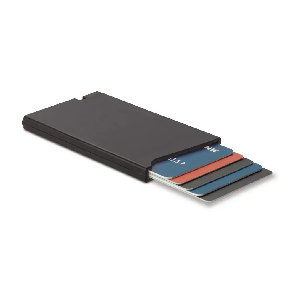 Elevate your brand with our customizable RFID card holder in durable ABS material. This sleek Toppoint Design safeguards bank cards from RFID skimming threats, ensuring secure transactions for your clients and employees. With a simple button push, it ejects up to five cards for effortless access—perfect for busy professionals on the go.