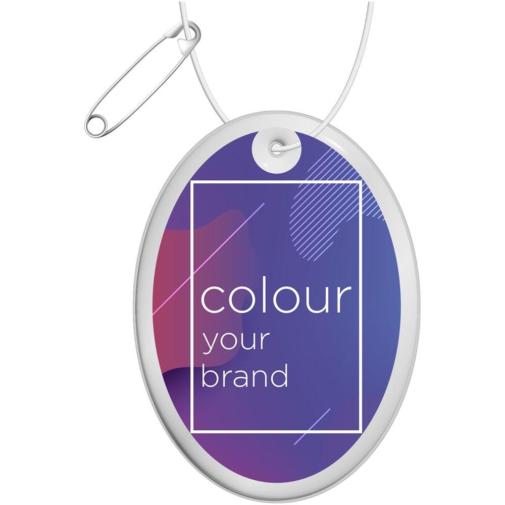 Boost your brand's visibility and promote traffic safety with these certified oval reflective hangers. Ideal for marketing professionals and event organizers, attach them to clothing, bags, or gear to ensure standout presence in low-light conditions.
