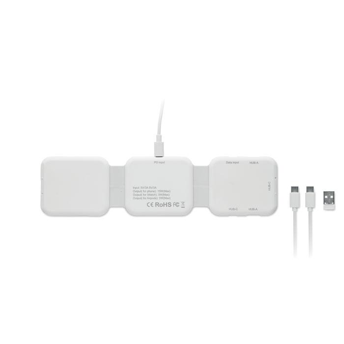 Stay connected on the go with its integrated hubs—two Type-C and two USB-A ports—plus a built-in Type-C to USB-A cable for seamless charging. Its compact, foldable design makes it an effortless promotional giveaway, ensuring your logo stands out during events or client interactions.