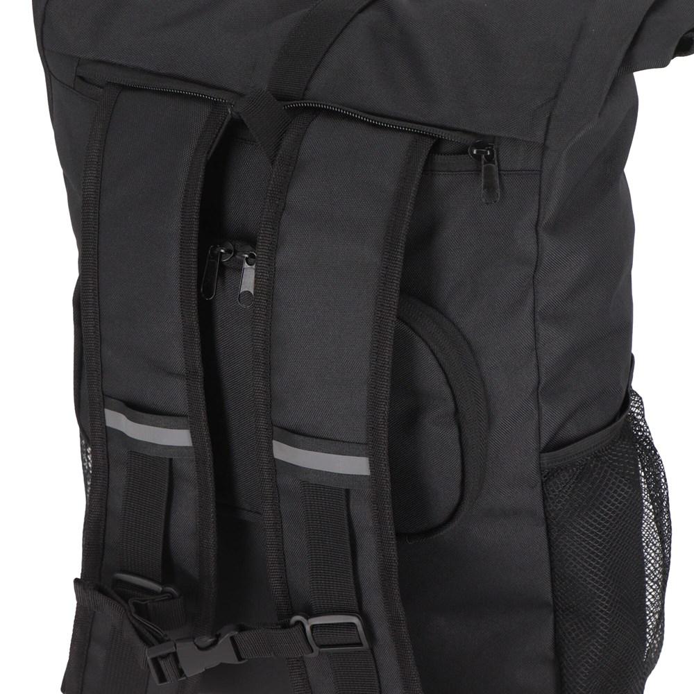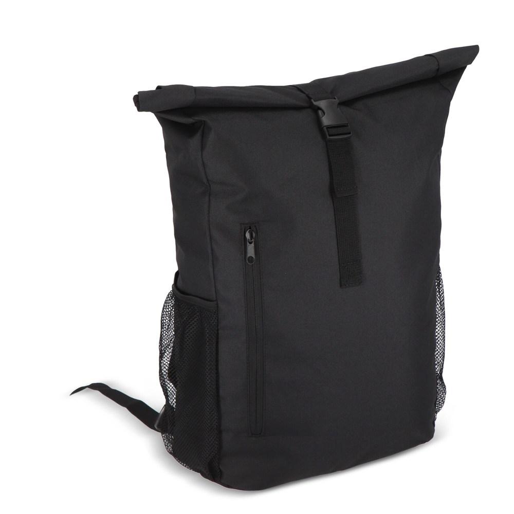 Elevate your brand visibility with our personalized Rolltop bicycle backpack, a 20-liter sustainable choice made from recycled PET material. Ideal for marketing professionals and event organizers, this trendy roll-top design offers ample storage with a zippered top, front pocket, top grab handle, adjustable padded detachable shoulder straps, and dual clips for secure bicycle attachment during rides.