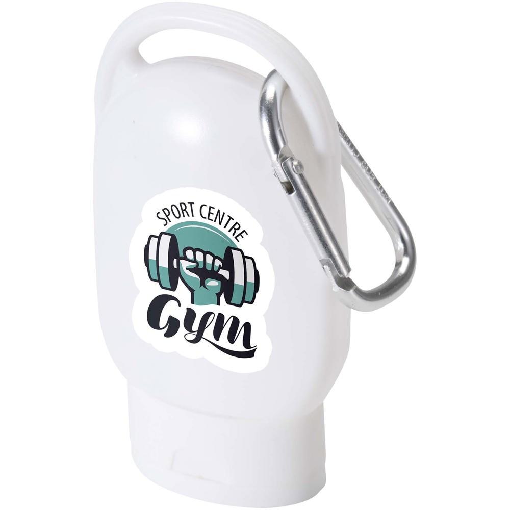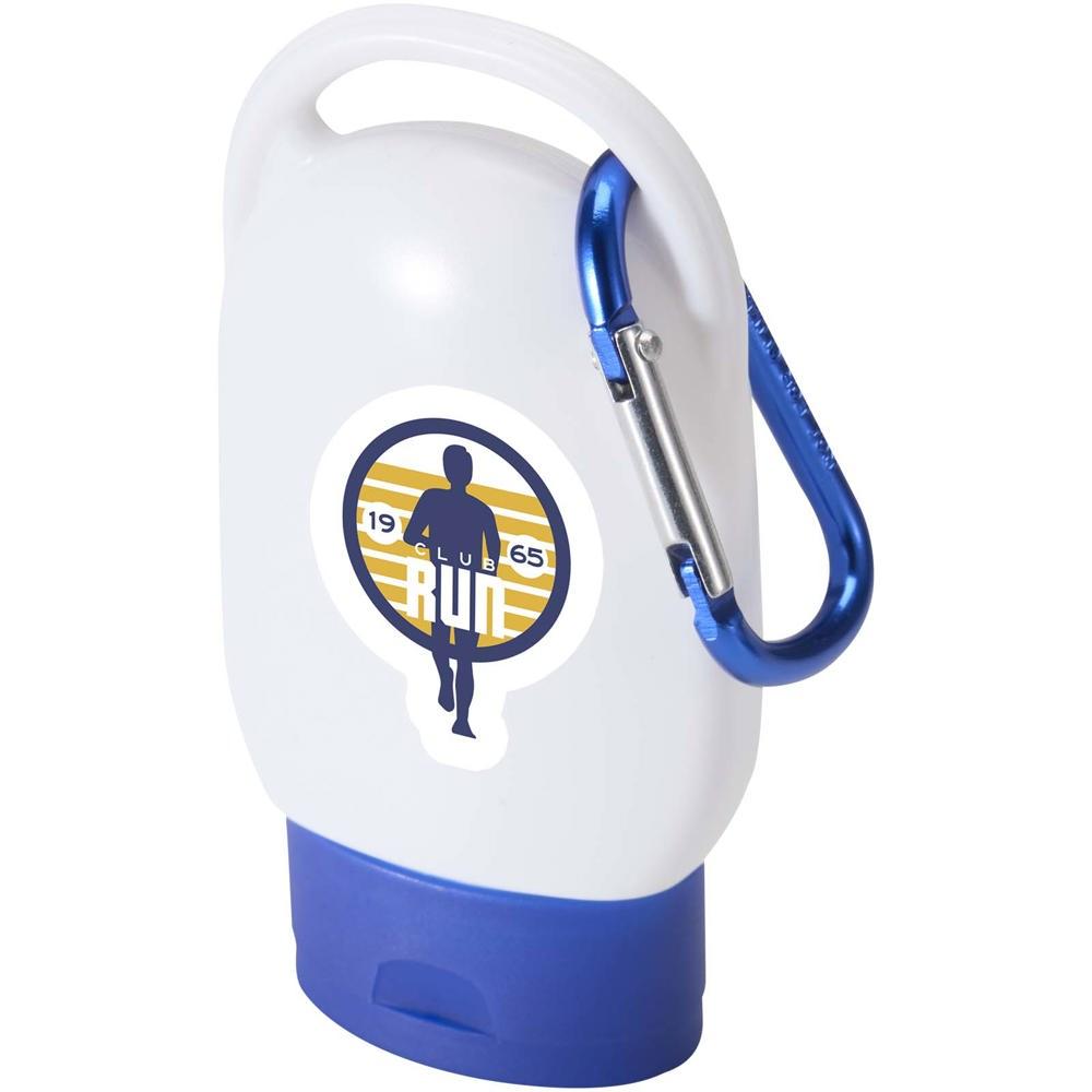 Keep your brand protected and visible with this compact spf 30 suncream, perfect for promotional giveaways. Its pocket-sized 30 ml tube with built-in carabiner clip attaches easily to bags, belts, or keyrings, ensuring sun protection stays handy during hikes, festivals, travel, or outdoor events.