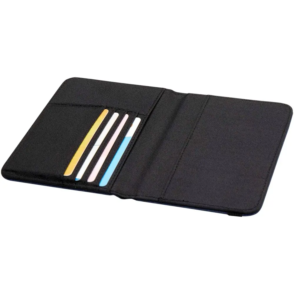 Elevate your brand with the Ross RFID Passport Holder, a sustainable promotional giveaway crafted from GRS-certified recycled polyester. Ideal for frequent travelers and event attendees, this compact accessory (10 x 14 x 1 cm) features dedicated RFID-protected pockets for passports, tickets, credit cards, and essentials, ensuring secure organization on the go. The elastic band closure adds reliable protection against loss or tampering.