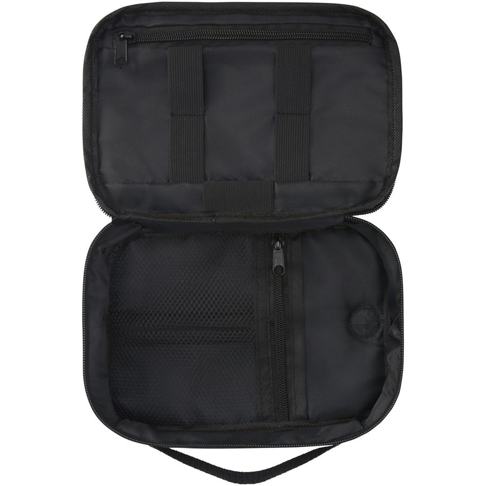 Elevate your brand with this sustainable GRS recycled tech pouch, perfect for marketing professionals and event organizers seeking customizable promotional giveaways. Ideal for keeping power banks, charging cables, and electronic accessories neatly organized during travel or events.