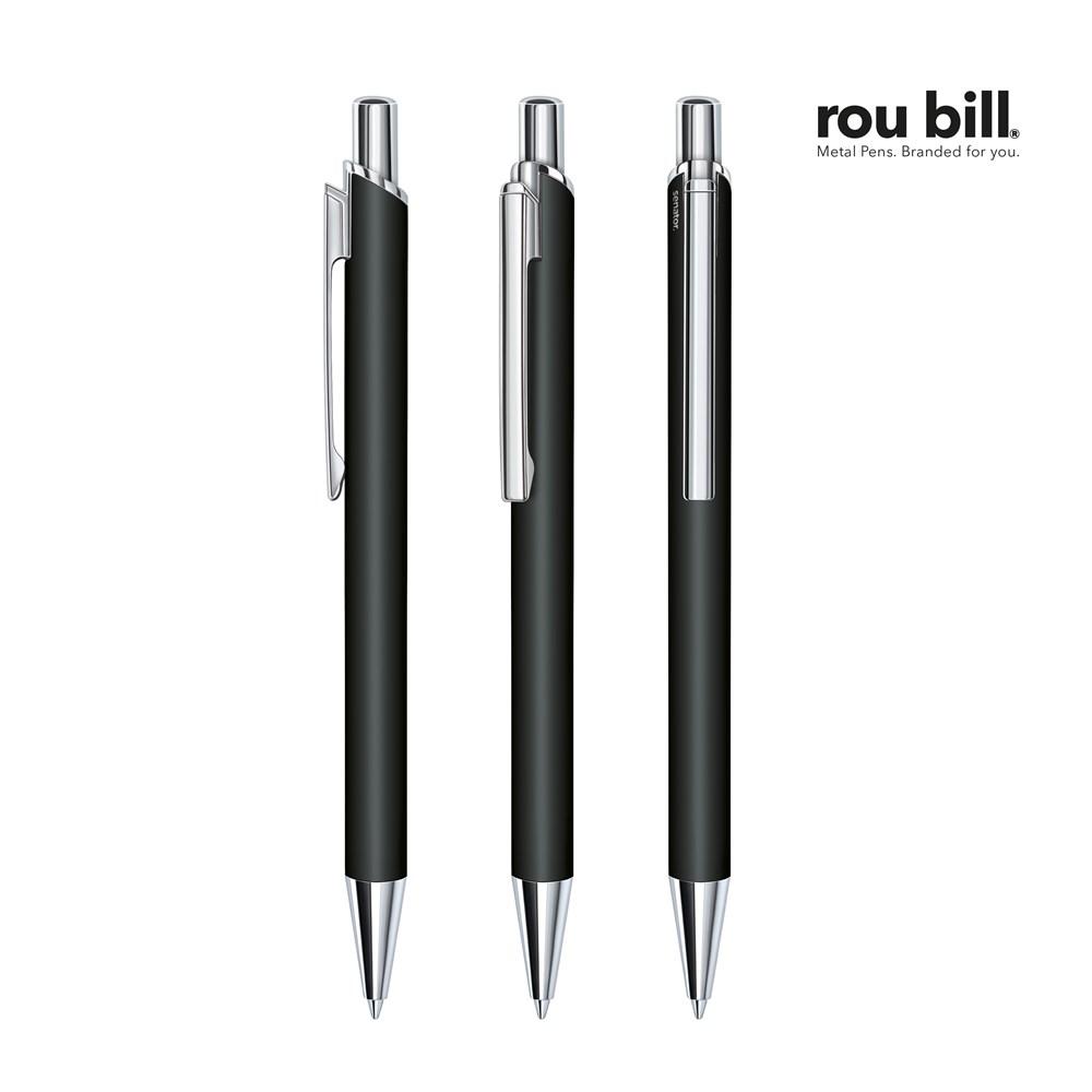 Elevate your promotional giveaways with this premium soft touch retractable ball pen, featuring a durable metal barrel coated in soft lacquer for a comfortable grip and upscale feel. The metal fittings add a professional touch, while the integrated Roubill Magic Flow G2 refill (1.0 mm) ensures smooth, reliable writing performance every time.