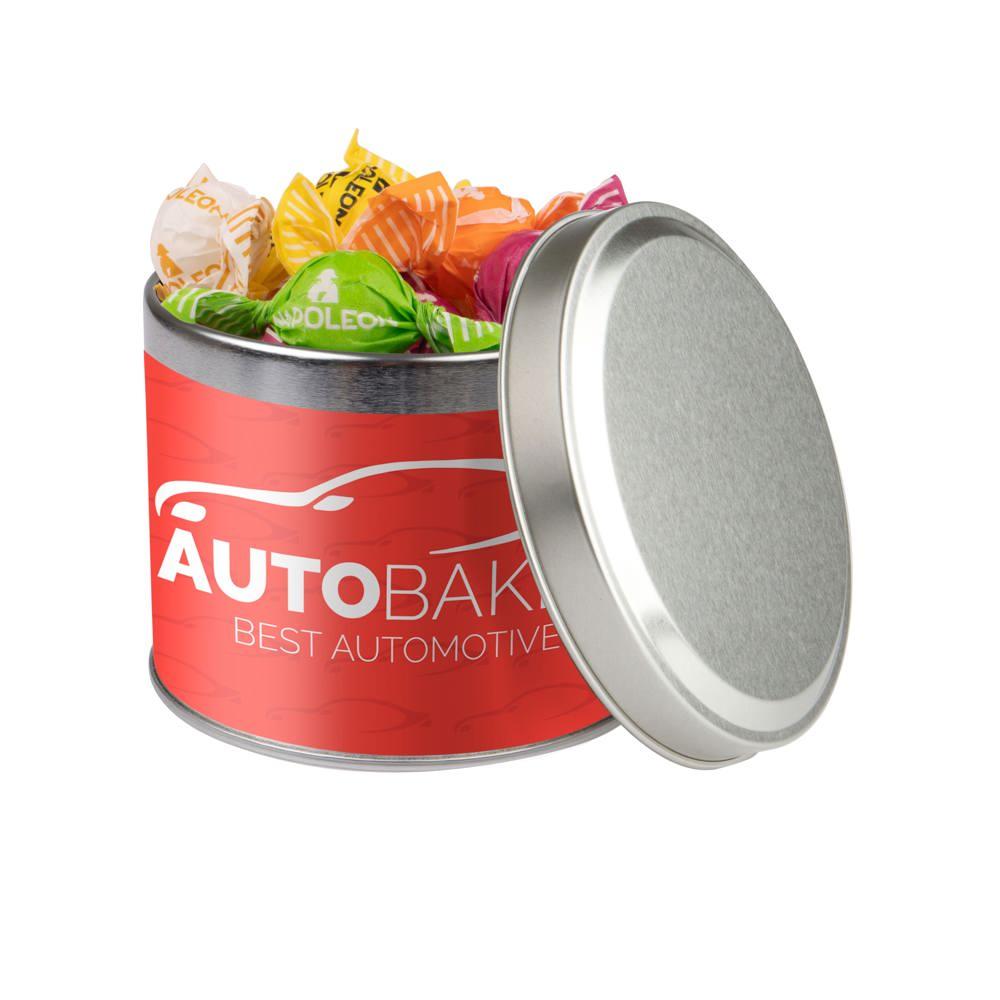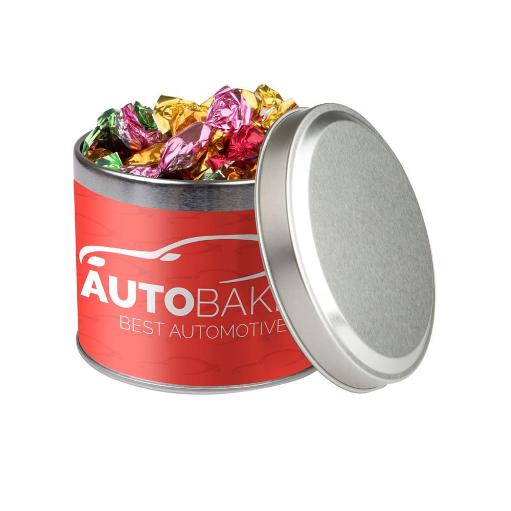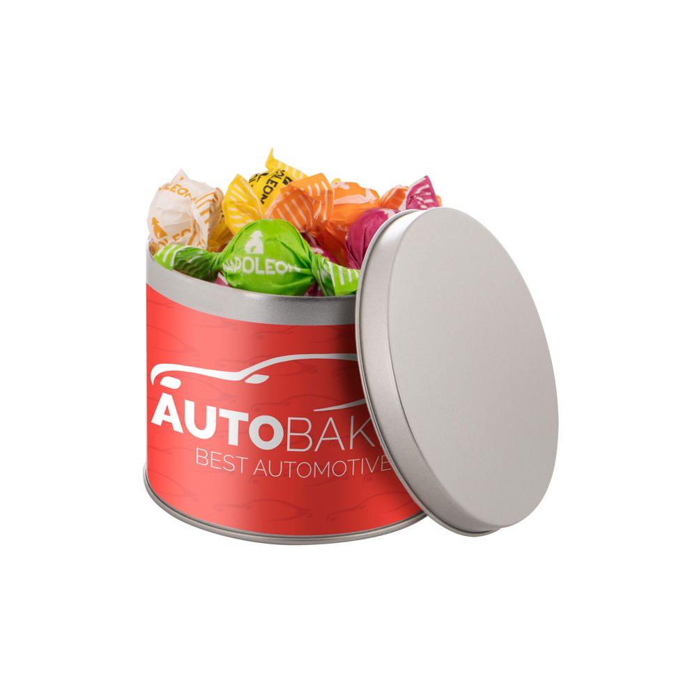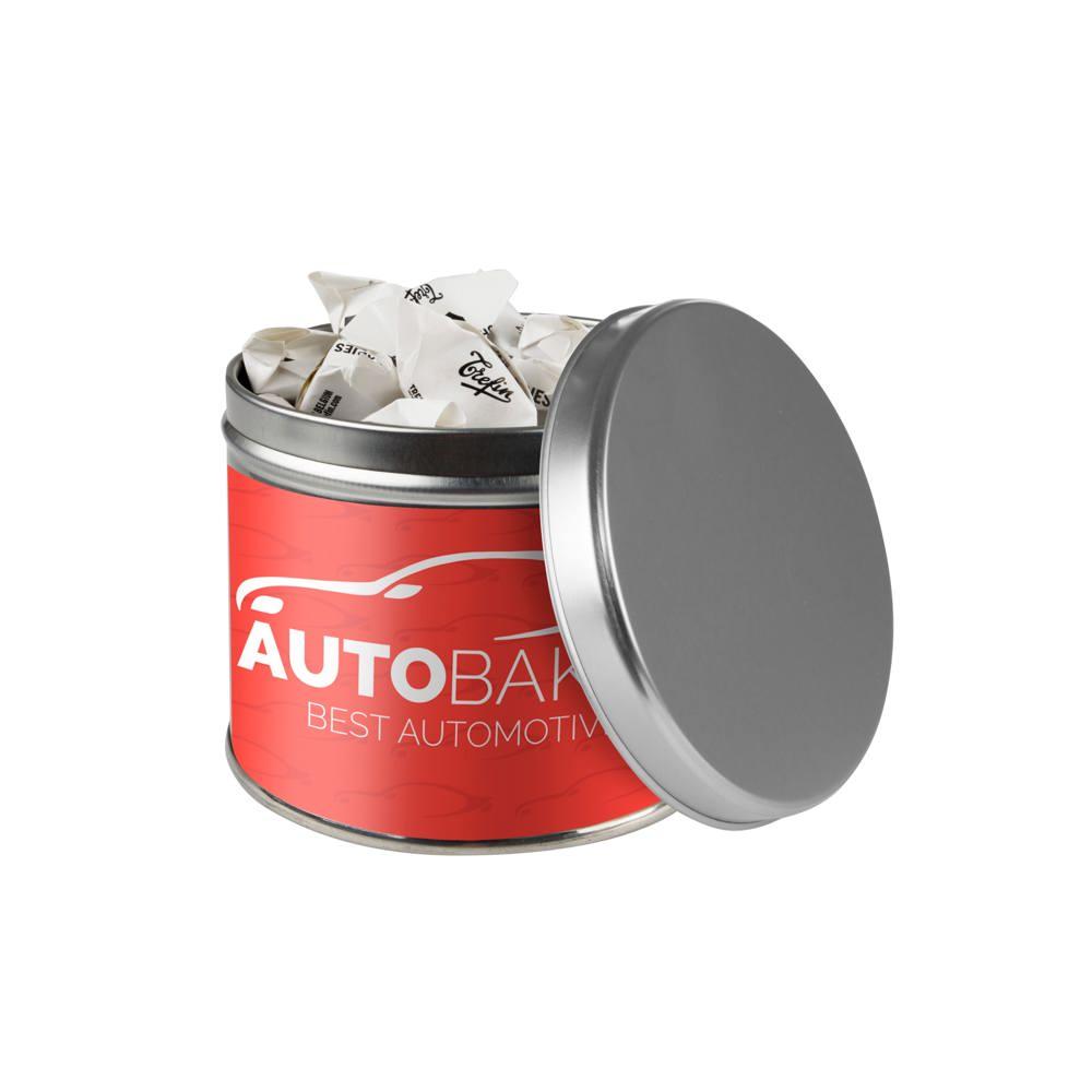 Ideal for corporate events, trade shows, or client appreciation, it offers ample space for your logo or branding to ensure maximum visibility. The durable tin keeps the treats fresh, delighting recipients while reinforcing your message long after the event. With a 100 mm diameter, it's portable and eye-catching, driving engagement and loyalty among your audience.