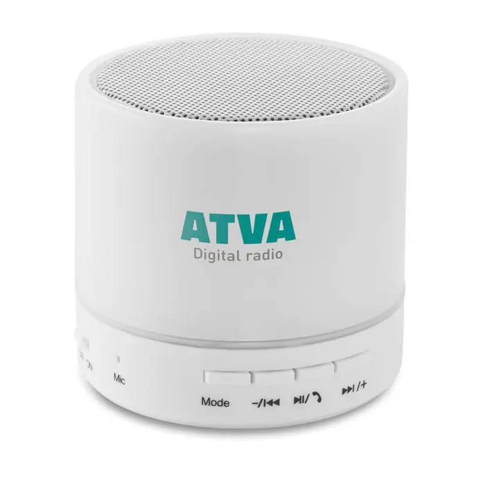 Elevate your brand with the ROUND wireless speaker LED, a compact 2.1 Bluetooth speaker perfect for promotional giveaways. Crafted from durable ABS, it features vibrant LED light indication for eye-catching appeal during events or client distributions. Enjoy versatile playback via SD card port, AUX, or USB cable, plus hands-free calling for added convenience.