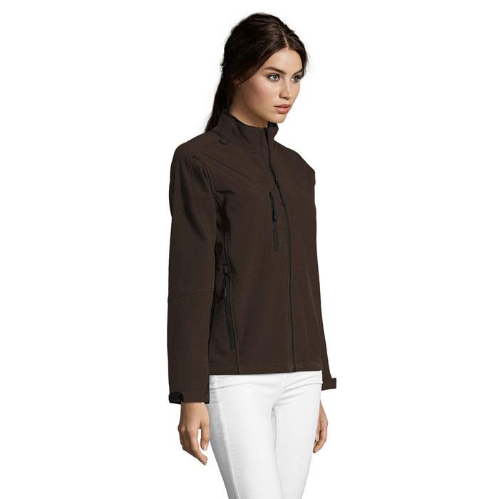Elevate your brand visibility with this premium women's softshell zipped jacket from SOL'S ROXY. Crafted from a durable 3-layer softshell fabric (94% polyester, 6% elastane bonded to 100% polyester polar fleece lining), it features an 8000 mm waterproof breathable membrane for reliable protection against light rain and wind.