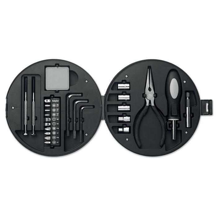 Elevate your brand visibility with the RUEDA TOOL, a premium 25-piece tool set designed as the ultimate promotional giveaway for marketing professionals and event organizers. Encased in a distinctive tyre-shaped box, this compact kit equips recipients with essential tools including 1 extender, 1 socket screwdriver, 1 nose plier, 5 sockets, 3 hex keys, 10 bits set, 2 precision screwdrivers, and 1 tape measure—perfect for quick repairs and daily tasks.