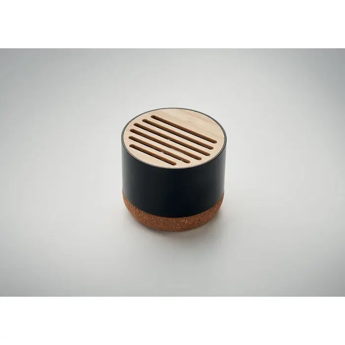Elevate your promotional gifts with this sustainable 5.3-inch wireless speaker, crafted from recycled aluminum for an environmentally conscious choice. The cork base provides a natural, stable footing, while the bamboo top detail adds a premium, eco-chic touch.