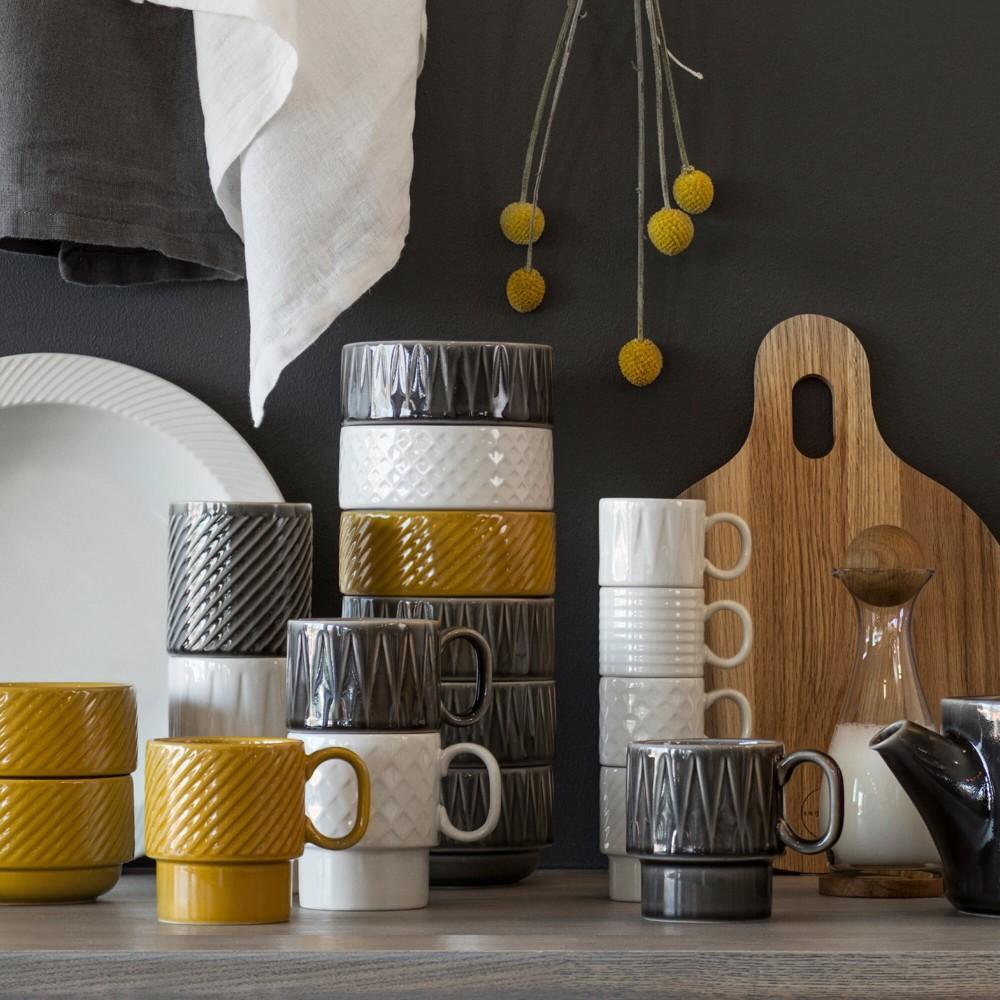 Elevate your brand with this stylish 4-piece espresso mug set from the Coffee & More series by Sagaform, designed by Margot Barolo. The distinctive retro relief pattern captures the playful, bold vibe of the 1970s, making it a standout choice for promotional giveaways and events.