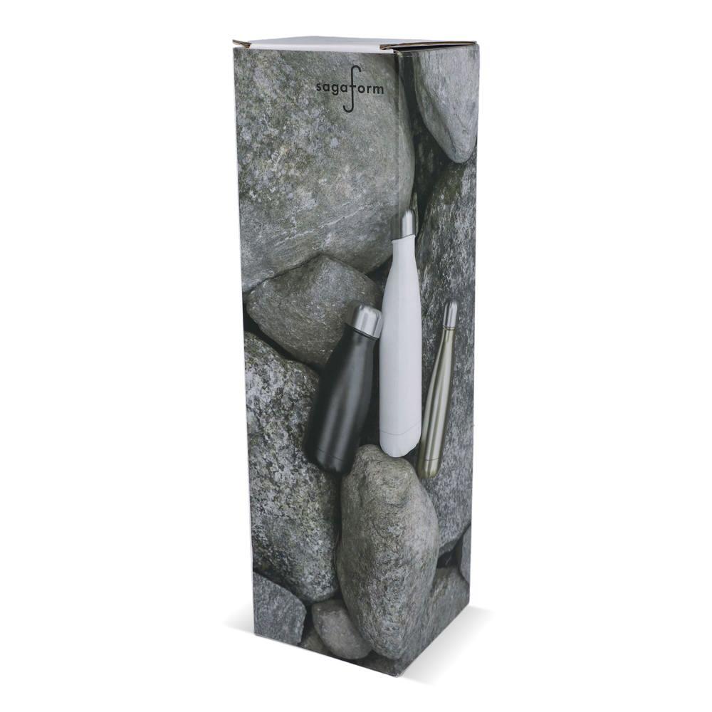 Elevate your brand visibility with the Sagaform Nils Steel Bottle 500ml, a sustainable choice made from recycled steel featuring an exclusive glossy finish. Its innovative double-wall design with copper coating maintains drinks cold for up to 24 hours or hot for 12 hours, eliminating condensation for reliable performance on the go.