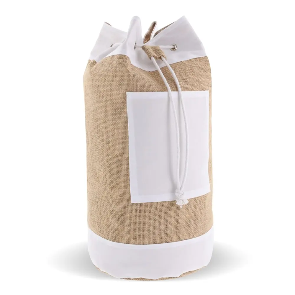 Elevate your brand with our personalized Sailor Bag made from sustainable jute and cotton. This versatile duffel bag offers ample space for essentials, ideal for events, giveaways, or promotional campaigns. The adjustable shoulder strap ensures comfortable, hands-free carrying, while the secure drawstring closure keeps contents safe.