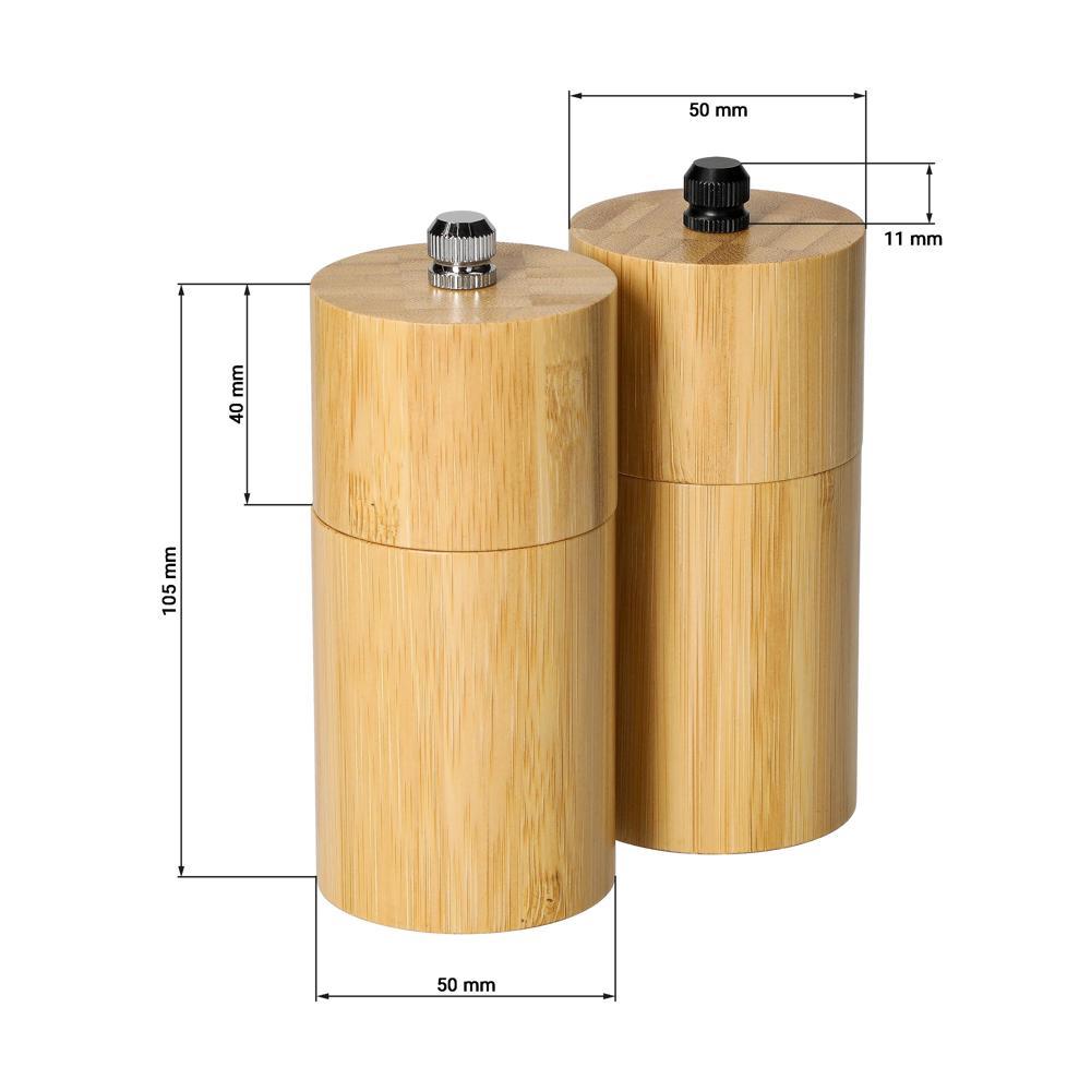 Compact bamboo salt and pepper mill set