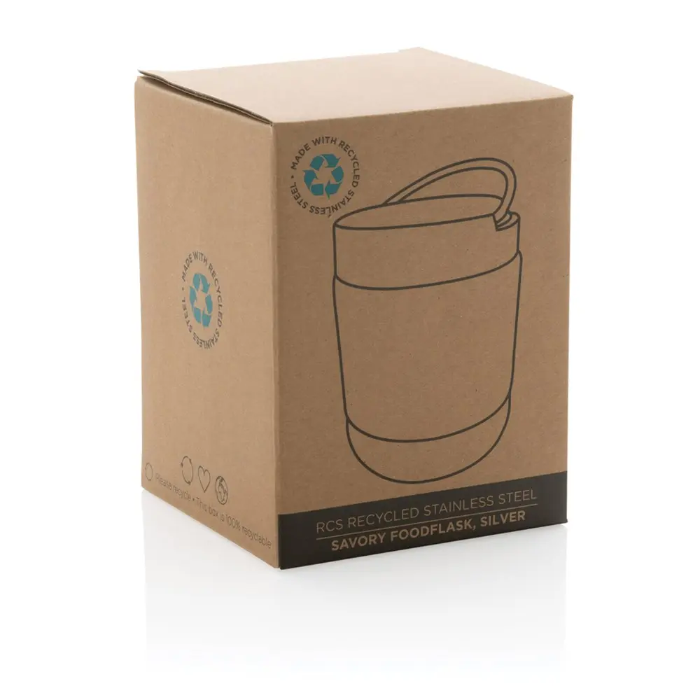 Elevate your brand with the Savory Food Flask, a premium promotional gift perfect for marketing campaigns and events. This 400ml leak-proof container keeps soups hot for up to 5 hours and salads cold for 15 hours, ensuring meals stay fresh on the go. Crafted from recycled stainless steel and polypropylene with 66% recycled content under RCS certification, it's BPA-free and compliant with German food safety standards—ideal for eco-conscious clients.