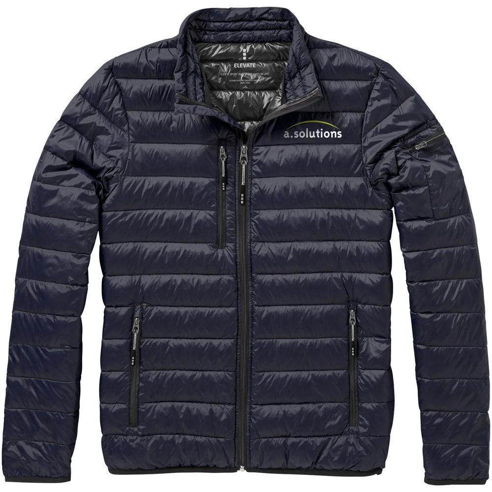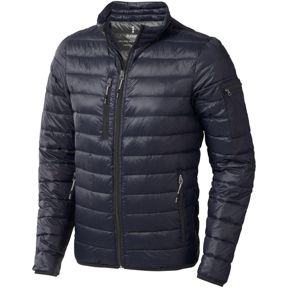 Elevate your brand with the Scotia men's lightweight down jacket, the perfect promotional giveaway for marketing campaigns and events. Crafted from durable nylon dull cire 20D with a water-repellent finish, it offers superior protection against wind and weather while ensuring easy movement and all-day comfort. Elasticated bindings at the hem and cuffs provide a snug, secure fit that enhances insulation without bulk.