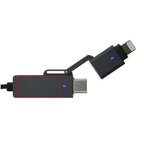 Crafted with recycled silicone cords, durable zinc-alloy end caps, and a 1-meter length for everyday convenience, it offers dual USB-A and USB-C inputs for universal compatibility with USB-C and iPhone connectors. Customize it in bulk with your logo to create standout promotional giveaways that recipients use daily, reinforcing your brand long-term.