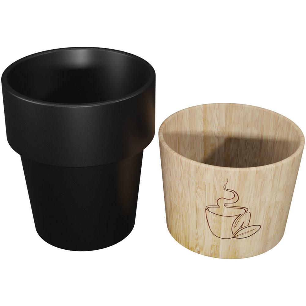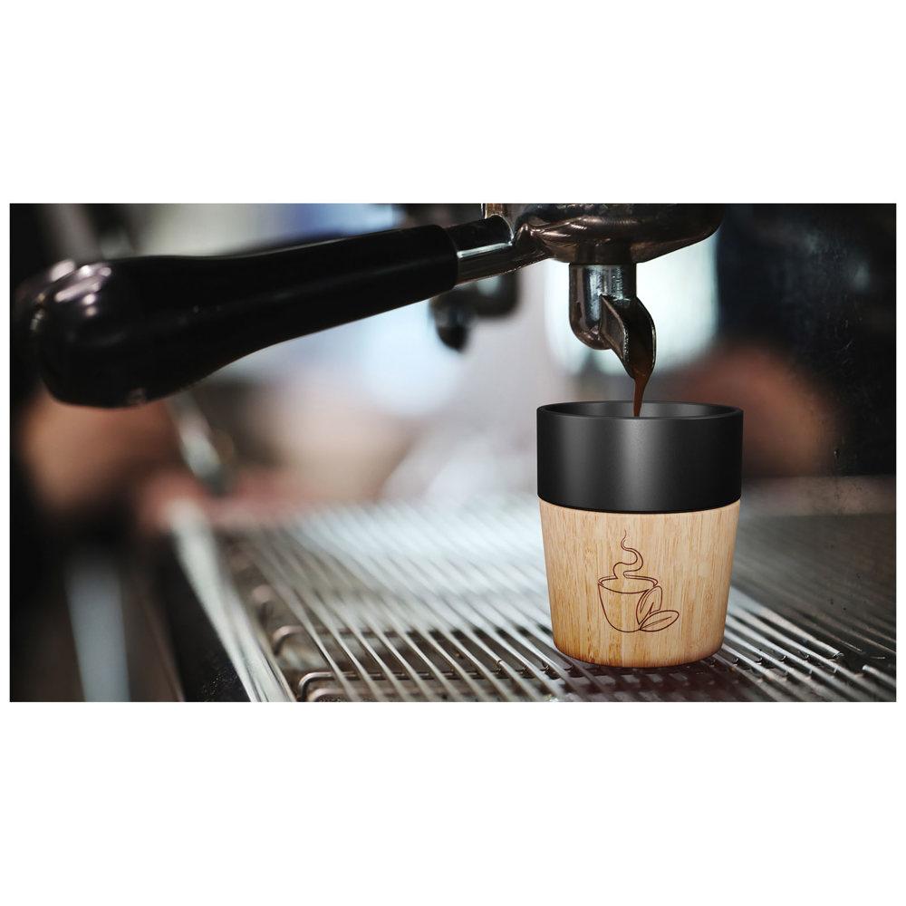 Elevate your brand with this stylish 150 ml ceramic mug featuring a magnetic wooden base, perfect for espresso or lungo shots. The innovative smart magnet technology allows effortless detachment of the base from the mug for quick and thorough cleaning—the ceramic mug is fully dishwasher safe.