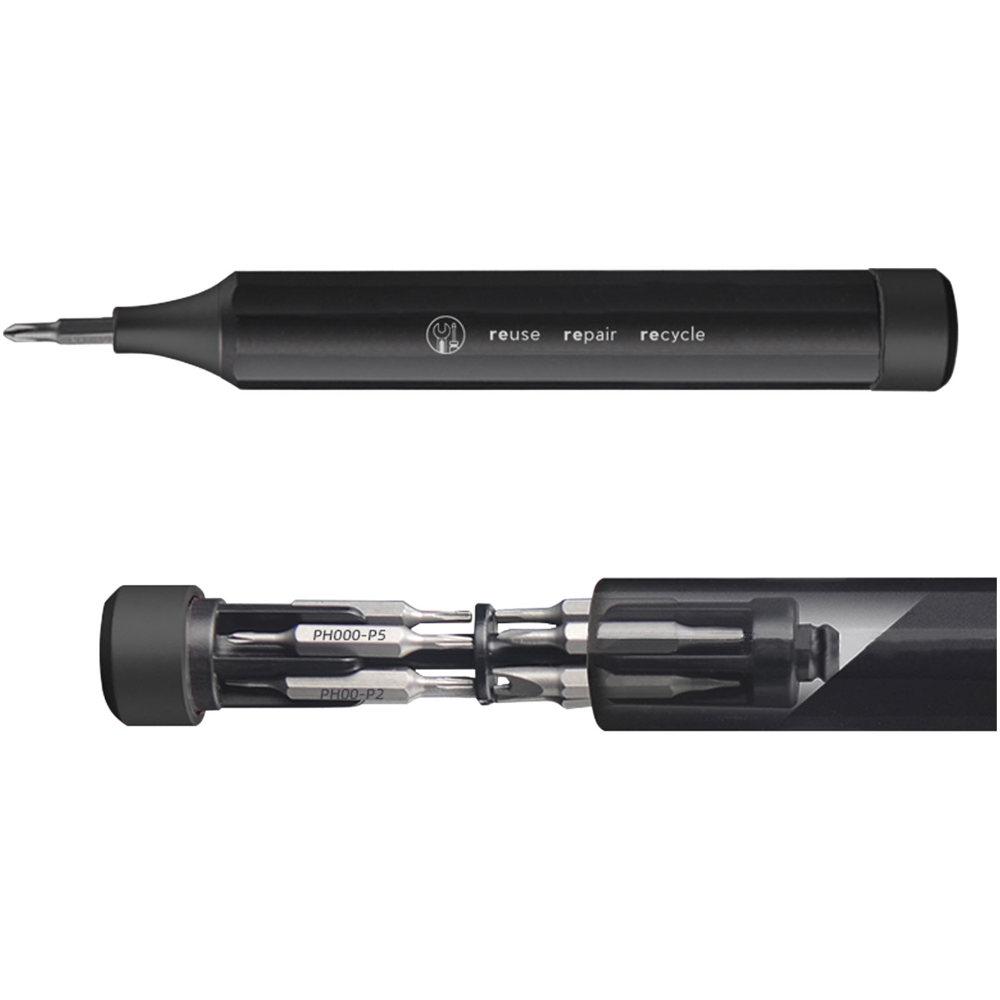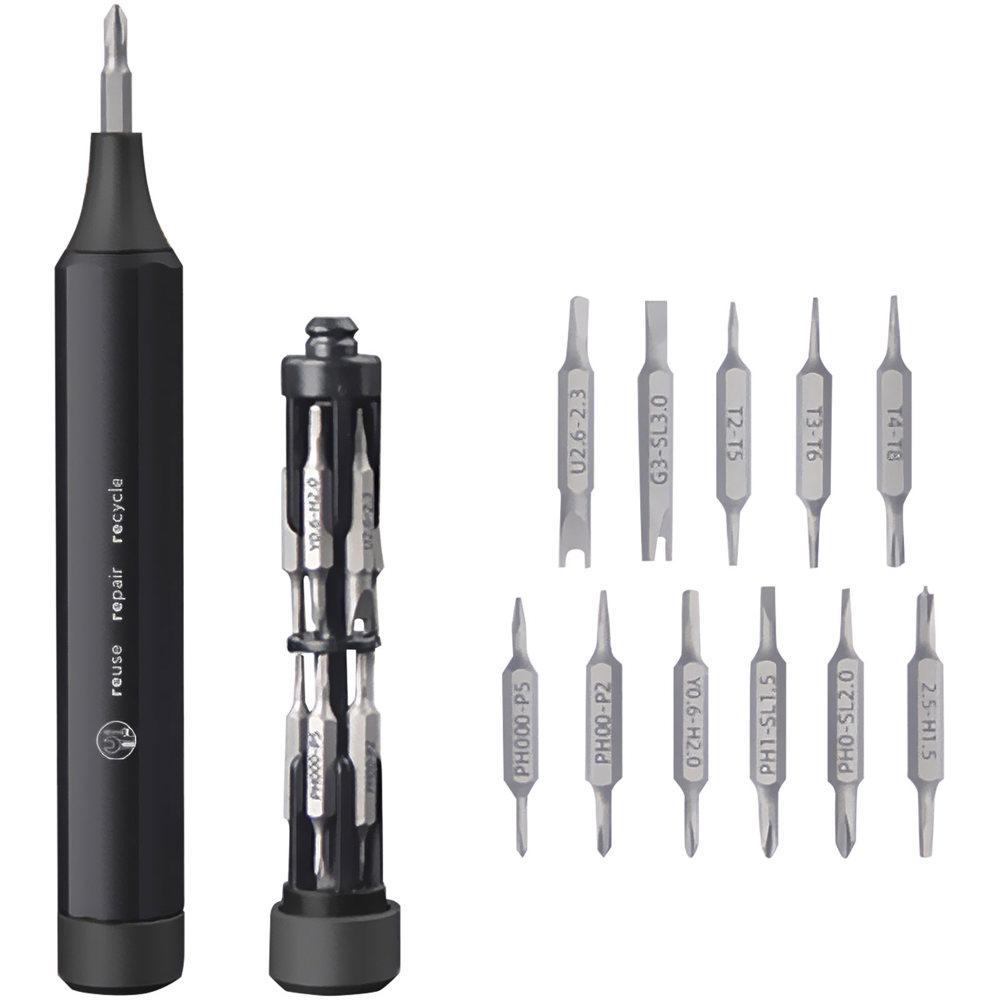 Elevate your brand with this sleek aluminium precision screwdriver set, featuring 10 double-headed bits for 20 versatile tips. Perfect for repairing smartphones, laptops, tablets, and other tech devices, the magnetic mechanism ensures quick and secure bit attachment.