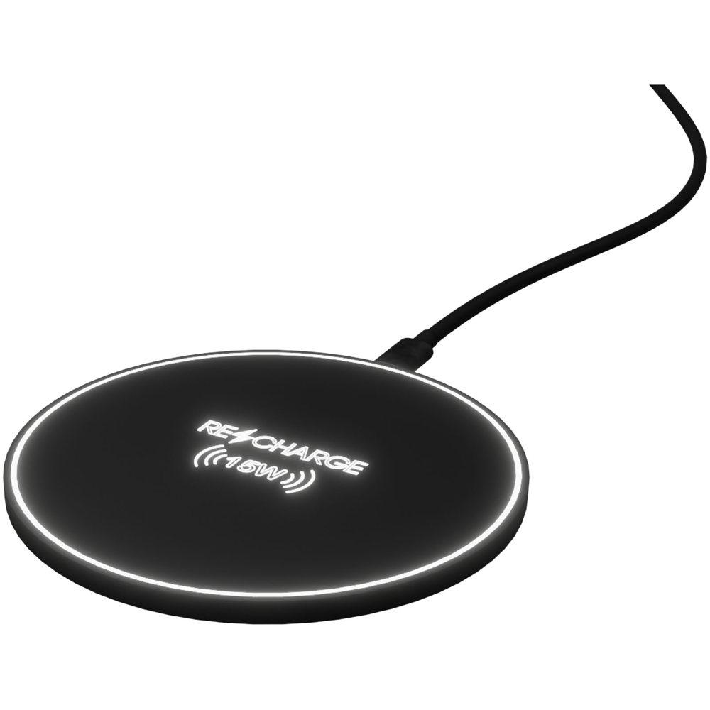 Elevate your brand with this extra slim 15W wireless charging pad, ideal for promotional giveaways and events. Crafted from durable ABS plastic with a soft touch finish, its compact 10 cm diameter (10 x 7.2 cm) round base fits perfectly on desks and nightstands.