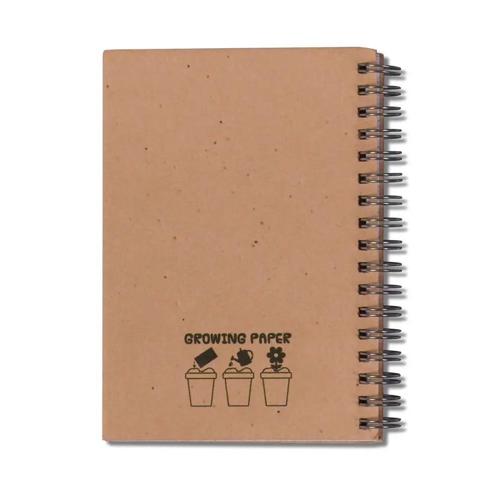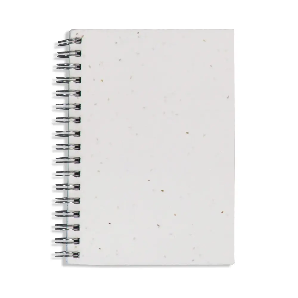 Discover a sustainable twist on traditional notebooks that aligns perfectly with your brand's green initiatives. This spiral-bound notebook features a cover crafted from seed paper, embedded with a vibrant mix of seeds including lavender, daisies, chrysanthemum, mint, and cherry tomatoes. After use, simply plant the cover in soil, water it, and watch wildflowers or herbs sprout—turning your promotional giveaway into a living reminder of your message.