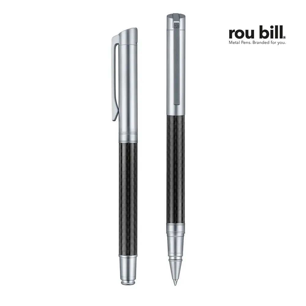 This rollerball features a sleek metal construction combined with innovative carbon elements, ensuring a modern and sturdy design that stands out. The cap, tip, and fittings in matte chrome add a touch of elegance, while the reliable metal safety refill provides smooth writing performance. Perfect for bulk orders with custom logo imprinting, it serves as an effective tool to promote your company long-term.