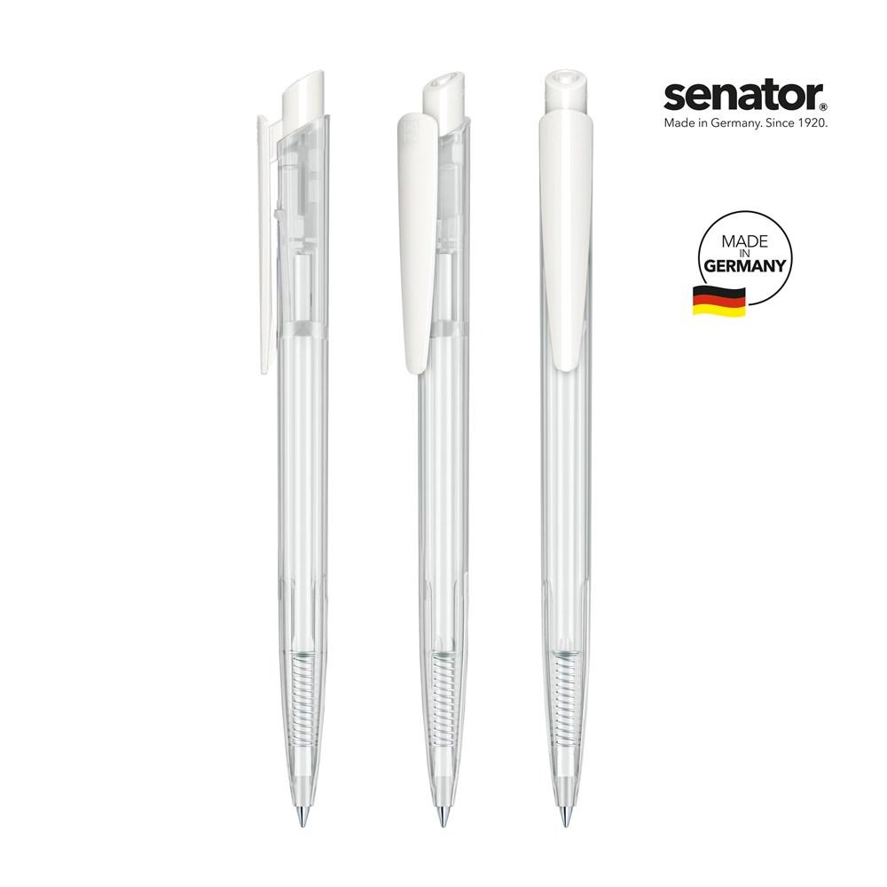 The Senator® Dart Clear retractable pen boasts a sleek, sporty design with a glossy transparent body and glossy opaque clip pusher, making it the perfect canvas for your custom logo imprint. Ideal for marketing professionals and event organizers, this premium promotional pen ensures your brand stands out during client giveaways or trade shows.