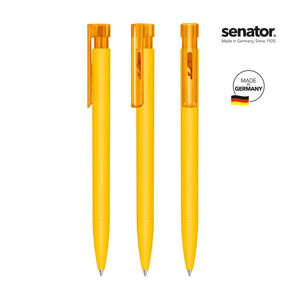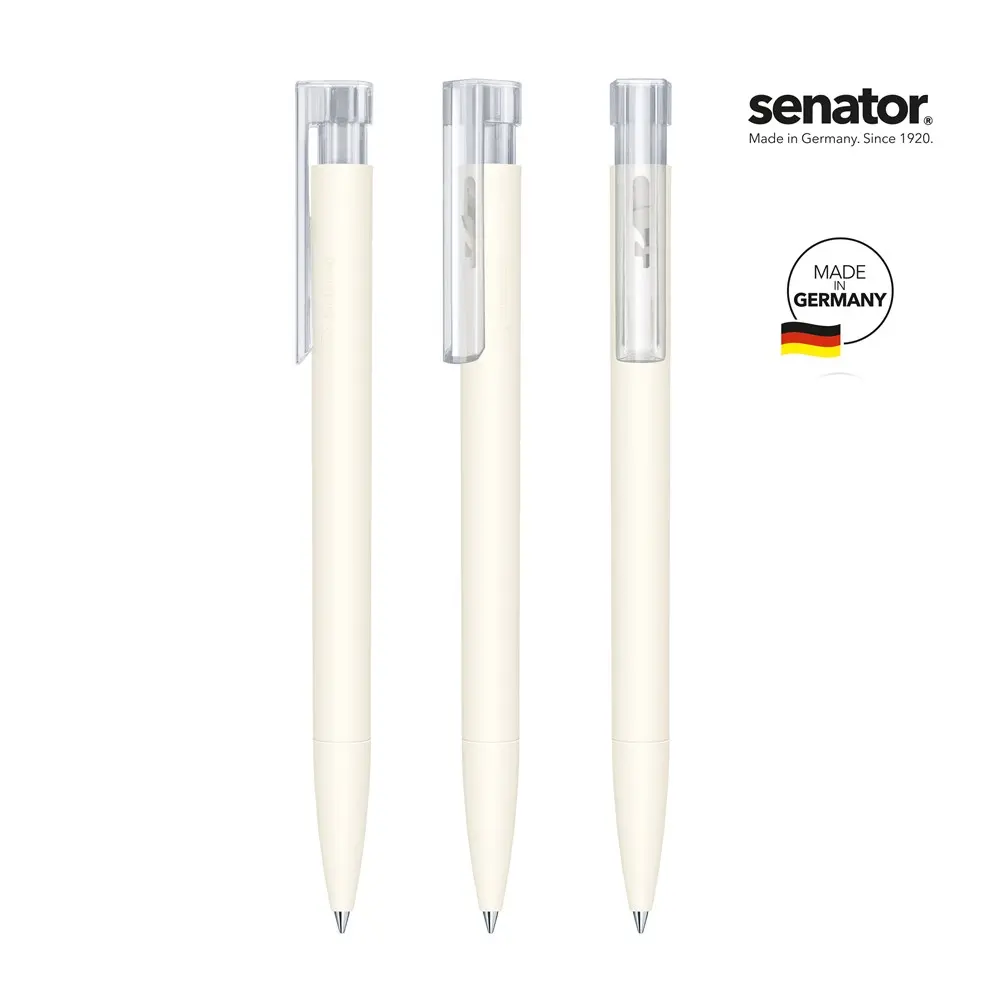 Elevate your brand's sustainability efforts with the Senator® Liberty Bio retractable pen, crafted from biodegradable PLA-based bioplastic for an eco-conscious promotional giveaway. This durable push ball pen features a trendy matt barrel and tip paired with a shiny, transparent clip and pusher, offering a modern look that appeals to environmentally aware audiences.