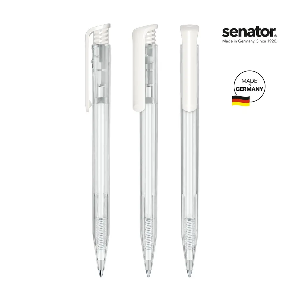 Elevate your brand with the Senator® Super Hit transparent retractable ball pen, a timeless bestseller featuring a striking clip-push mechanism and dependable build quality. Crafted from plastic with 50% recycled material and proudly made in Europe, this sustainable choice aligns with eco-conscious marketing efforts.