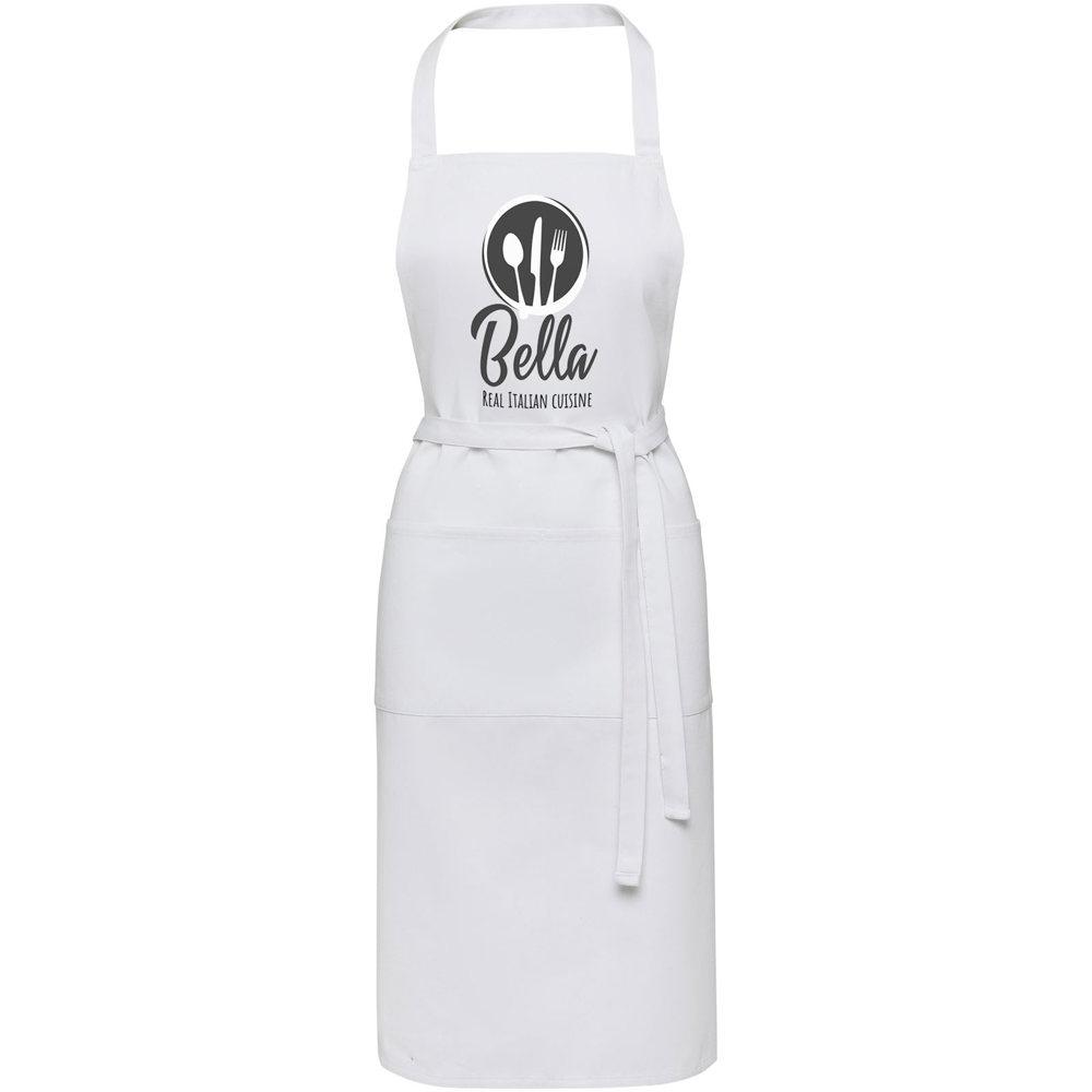 Elevate your brand's eco-conscious image with the Shara 240 g/m² recycled apron, crafted from 70% recycled cotton and 30% recycled polyester for exceptional durability and all-day comfort. Its sturdy construction withstands daily use, making it perfect for promotional giveaways at events, trade shows, or client appreciation campaigns.