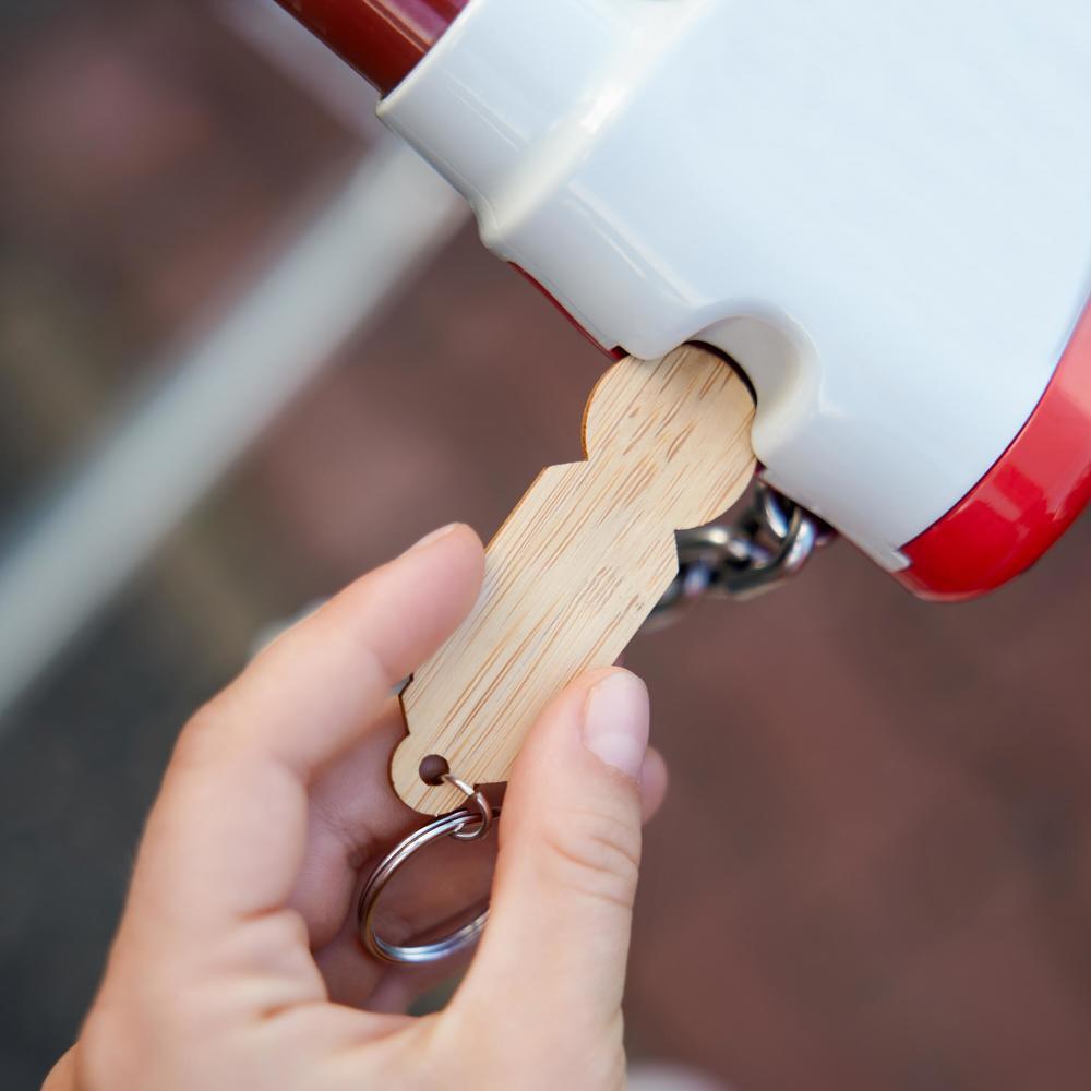 Elevate your brand with our sustainable bamboo shopping trolley token, the perfect customizable promotional gift for marketing campaigns and events. Crafted from eco-friendly bamboo wood, this clever keychain design eliminates the need for loose coins—simply attach it to your keys and insert directly into any trolley lock.
