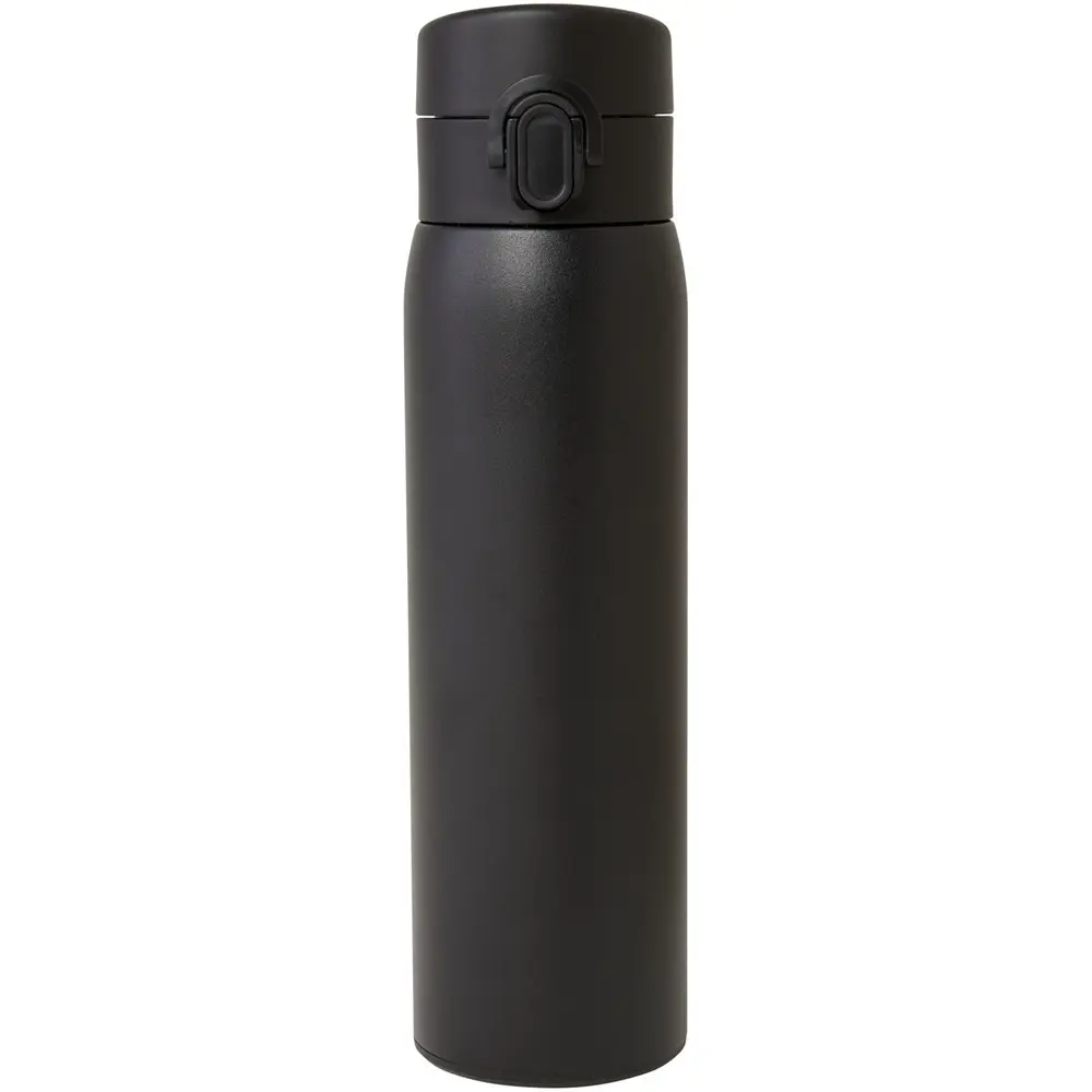 This 450 ml flask features a convenient easy button opening mechanism for effortless one-handed use. It's fully leakproof, ensuring no spills during travel or events. The advanced copper vacuum insulation maintains hot beverages for up to several hours or keeps cold drinks chilled, making it reliable for all-day use. Crafted from recycled stainless steel and recycled PP plastic, it measures 6.9 x 21.4 x 6.9 cm with a 6.5 cm diameter, offering a compact yet substantial feel.