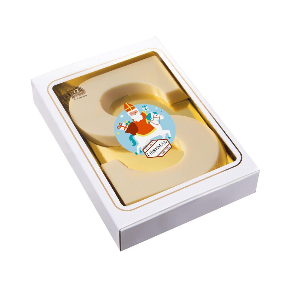 Delight your clients with this festive sinterklaas chocolate letter shaped as "S", filled with approximately 150 grams of premium chocolate. Packaged in an elegant box, it features a full-color sticker customized to your own design on the front, making it the perfect personalized promotional gift.