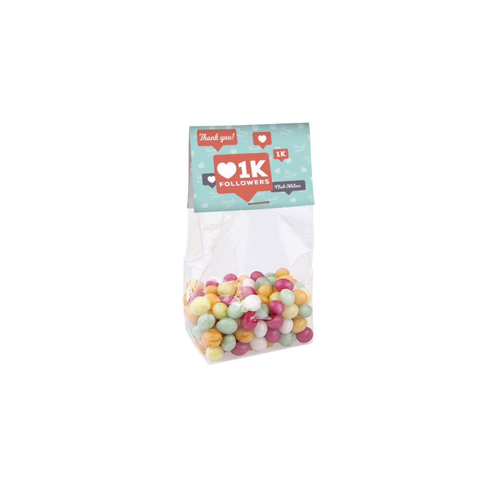 Elevate your promotional efforts with our small transparent bags, each featuring a full-color header card and filled with 100g of premium imperial mints. Ideal for marketing professionals and event organizers, these customizable giveaways allow full logo printing on the header card for maximum brand exposure.