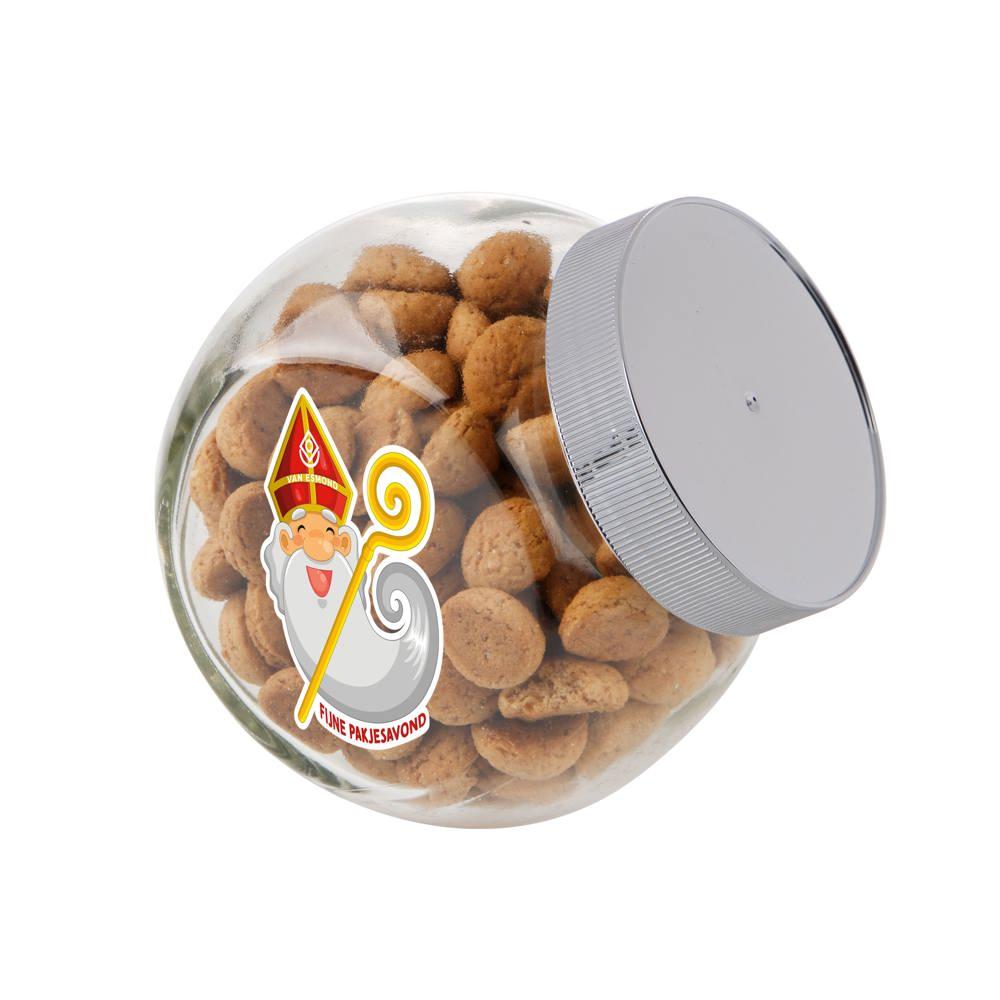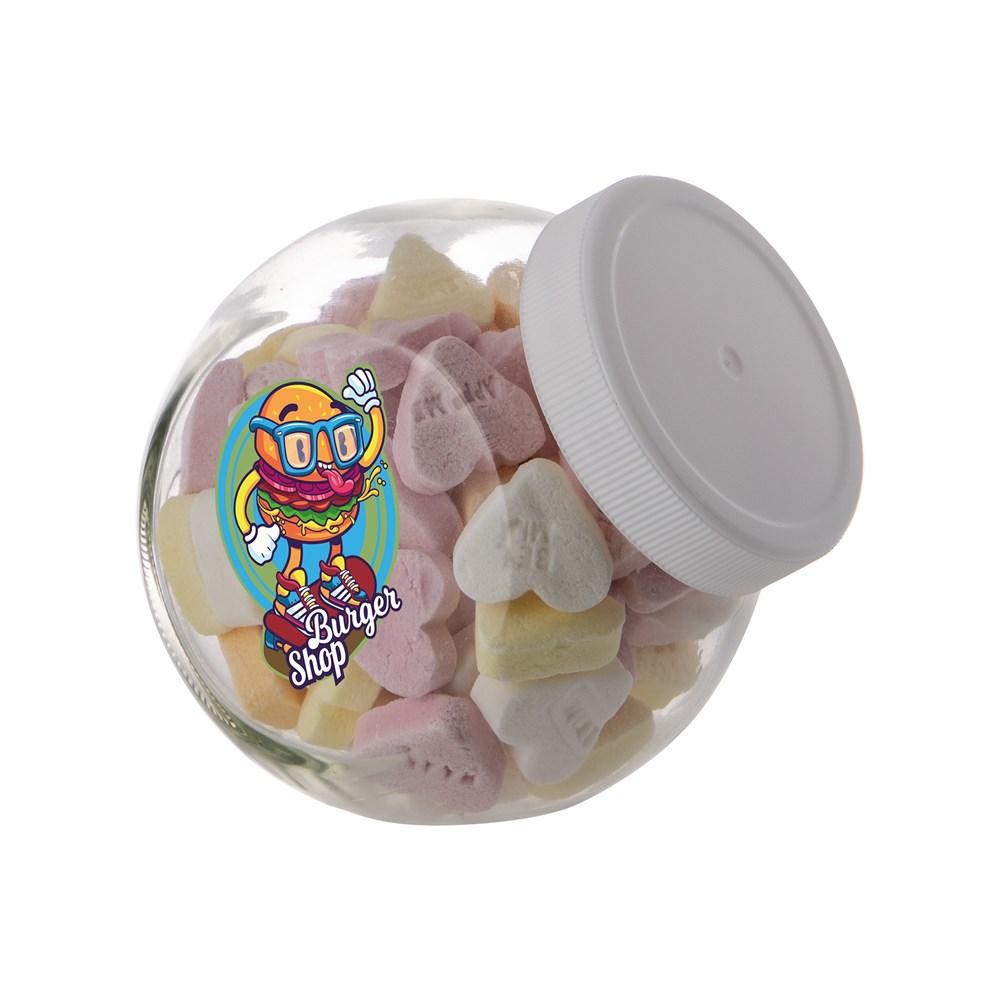 Elevate your brand visibility with our customizable small glass jar (0.4 liter), featuring full-color printed stickers on both sides for striking logo placement. Filled with a delightful mix of licorice sticks, this promotional gift delights recipients while showcasing your company's message at events, trade shows, or client appreciation campaigns.