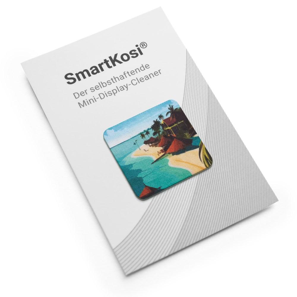 Elevate your brand visibility with the self-adhesive mini SmartKosi® display cleaner, a practical promotional giveaway that sticks directly to smartphones for constant exposure. This compact companion delivers non-stop advertising impact, effortlessly detaching to provide streak-free, scratch-free cleaning for screens using premium P-9000® HD microfiber.