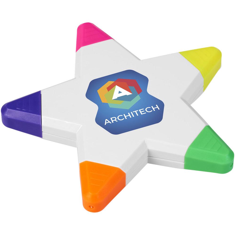 Elevate your promotional giveaways with this set of five star-shaped highlighters, ideal for marketing campaigns, events, and client appreciation. These fun, eye-catching tools make perfect branded favors that recipients will use daily, ensuring your logo stays visible.