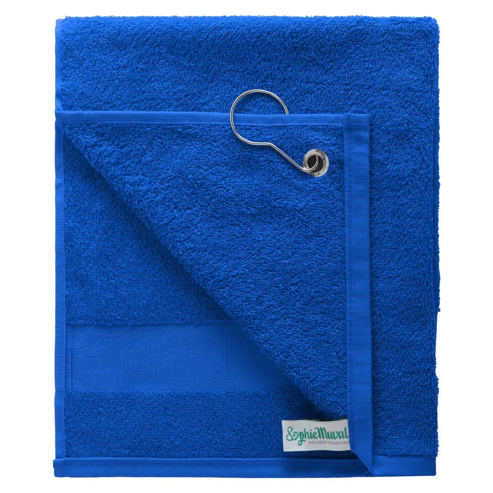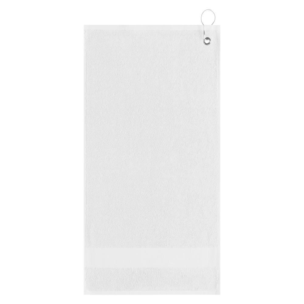 Elevate your brand with our customizable golf towel 55x30 cm, 450 gr/m², crafted from 100% ring-spun cotton for exceptional softness and absorbency. Featuring a practical hanging clip and a 4 cm high band ideal for logo printing, this towel ensures hassle-free attachment to any golf bag.