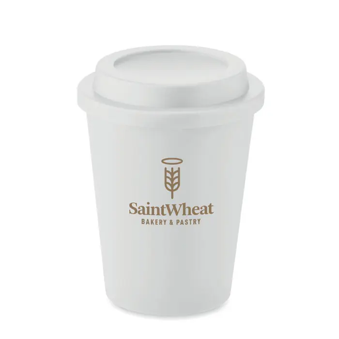 Elevate your branding with this versatile double wall tumbler made from durable PP material. With a 300 ml capacity and secure lid, it keeps beverages hot or cold longer, making it perfect for events, trade shows, or client gifts.