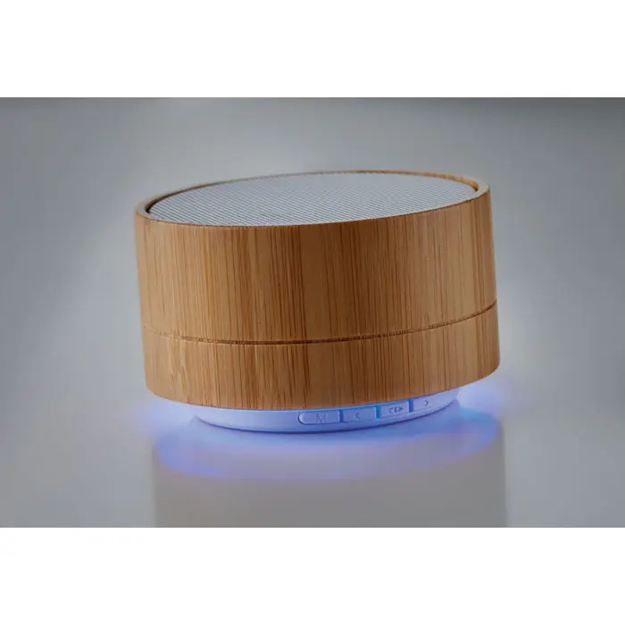 Elevate your brand's eco-conscious promotions with the SOUND BAMBOO, a 3W wireless speaker featuring a sustainable bamboo casing paired with durable ABS construction. Ideal for marketing professionals and event organizers, this portable audio device delivers clear 3W output at 4 Ohm and 5V, powered by a rechargeable 450mAh Li-ion battery for up to 3 hours of playtime. The integrated bottom light adds a subtle glow, perfect for visibility at events.