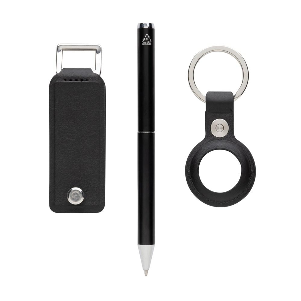 Elevate your promotional giveaways with this deluxe 3-piece set: a practical key organiser, AirTag holder, and recycled aluminium pen. Designed for efficiency and style, it keeps up to 4 keys organised while the integrated AirTag holder ensures your valuables stay trackable. Jot down quick notes with the sleek pen, making it an indispensable everyday essential.