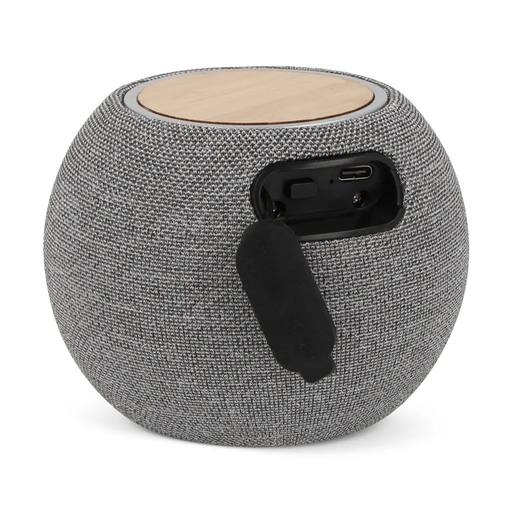 Enhance your brand visibility with the Spebalo speaker & wireless charger, a versatile 5W Bluetooth speaker and 15W fast wireless charger crafted from sustainable RPET and bamboo materials. This eco-friendly, compact device with a 108mm diameter offers natural aesthetics and reliable performance, perfect for desks, events, or giveaways.