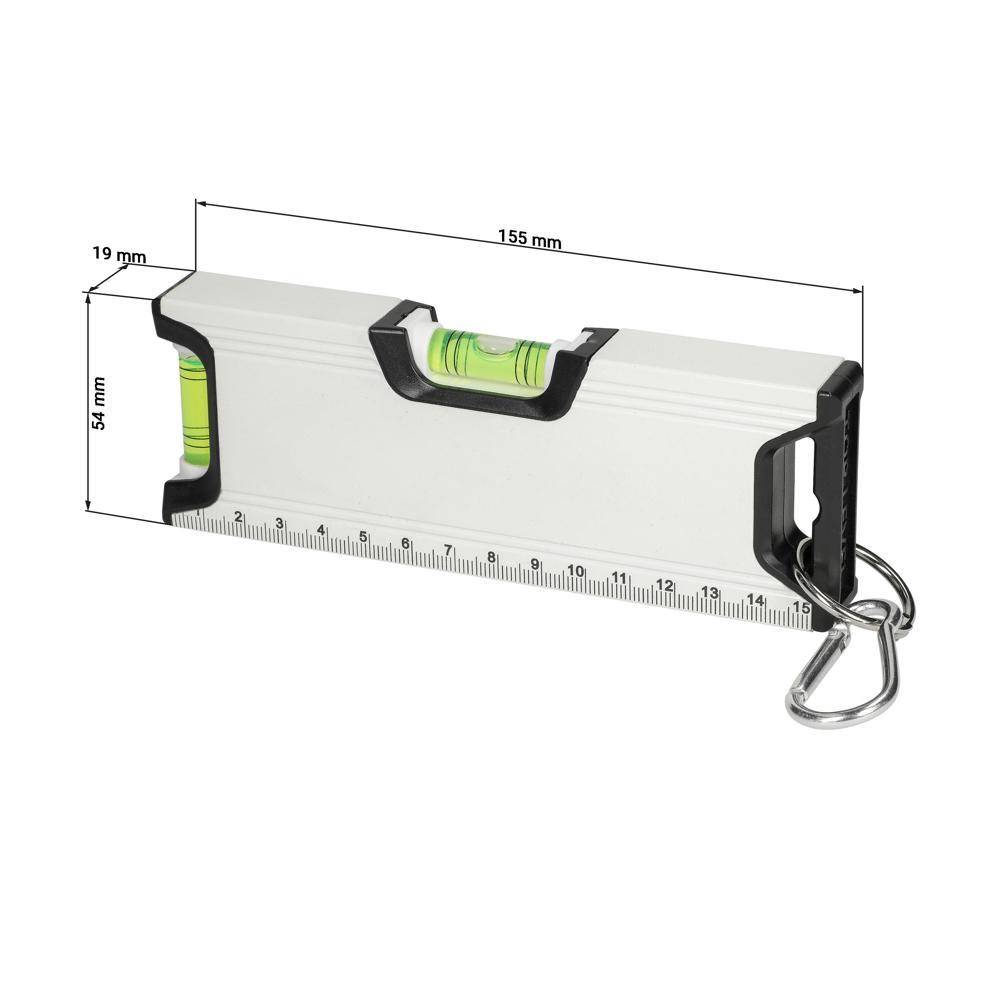 Elevate your brand with the customizable Spirit Level "Misura" 15.5 cm, a compact and durable promotional tool perfect for marketing professionals and event organizers. Crafted from robust aluminum in a handy 15.5 x 1.7 x 5.2 cm size, it ensures precise measurements with a clear bubble vial and additional scales for versatile building and craft applications.