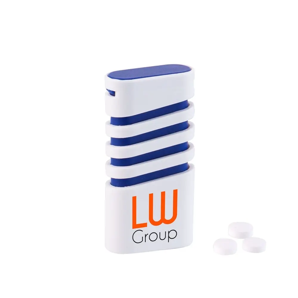 Elevate your brand visibility with our customizable Spring Dispenser with Mini Mints, crafted from durable plastic for everyday use. This compact dispenser holds approximately 5 grams of refreshing mini mints, perfect for handing out at events, trade shows, or as promotional giveaways to keep your logo in sight.