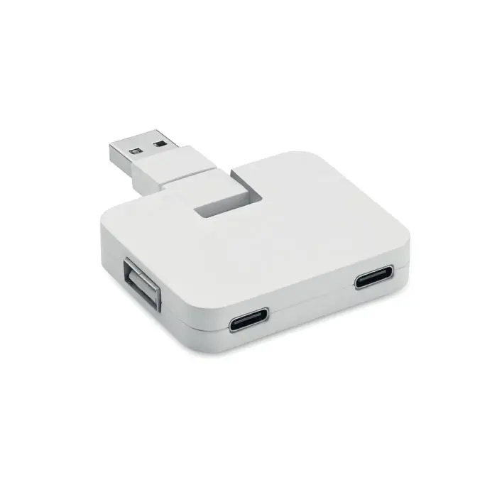 Elevate your brand visibility with the SQUARE-C 4-port USB hub, a sleek ABS-constructed essential for modern connectivity. Featuring two Type-A and two Type-C output ports powered by USB 2.0 standards, it supports versatile charging and data transfer for multiple devices simultaneously—perfect for busy professionals on the go.