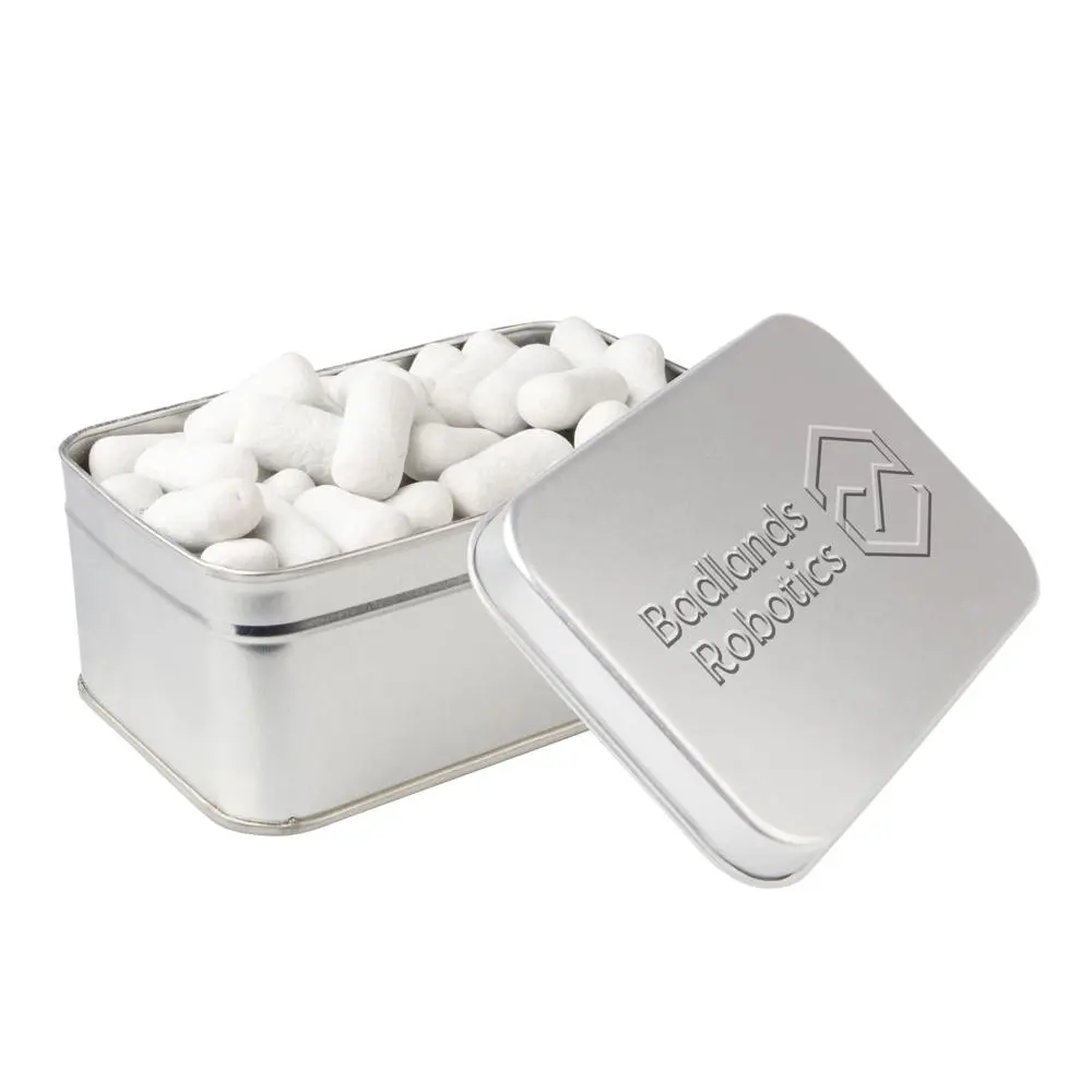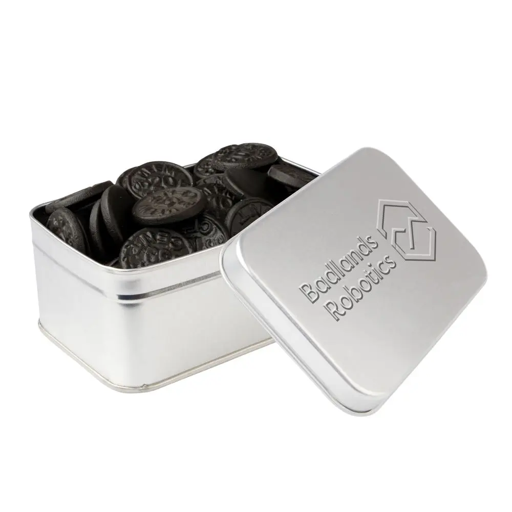 Inside each tin, you'll find approximately 140 grams of shimmering metallic sweets, offering a touch of elegance and indulgence. These treats are perfect for adding a sweet surprise to your giveaways, enhancing the overall appeal of your branded merchandise.