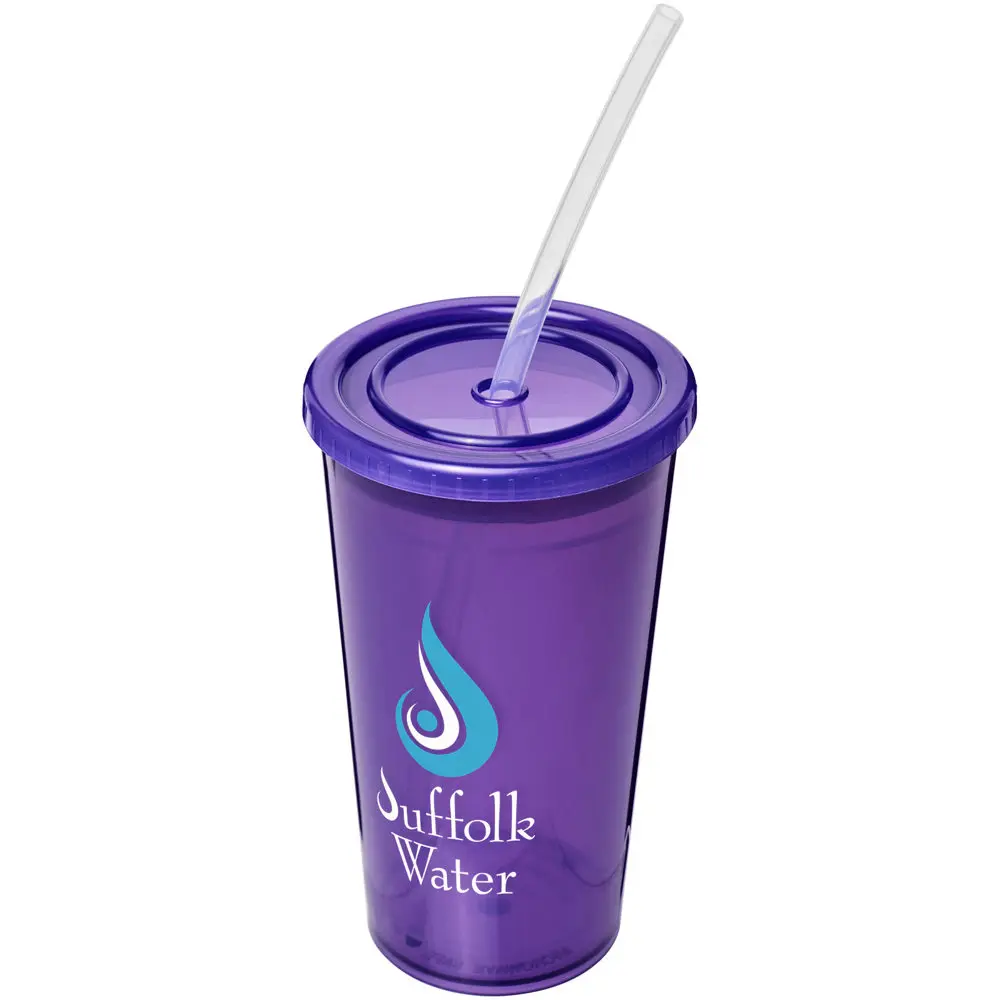 Elevate your brand visibility with the Stadium 350 ml double-walled cup, a premium promotional tumbler perfect for marketing campaigns and events. This insulated, translucent design keeps beverages hot or cold longer, ensuring a superior drinking experience for recipients. Complete with a durable PE straw, it holds 350 ml and measures 15 x Ø 9.5 cm for easy handling.