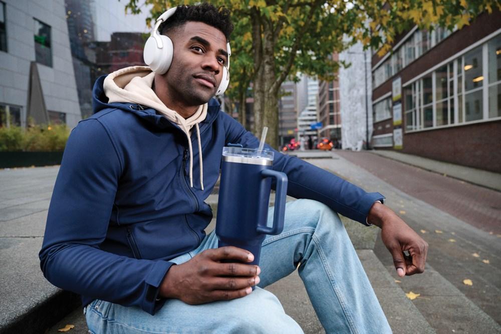 Elevate your brand with the Peakflow 1200ml steel tumbler, the ideal customizable promotional gift for marketing campaigns and events. Its ergonomic comfort-grip handle and slim 70mm diameter base ensure effortless carrying and compatibility with most cup holders, making it perfect for on-the-go recipients.