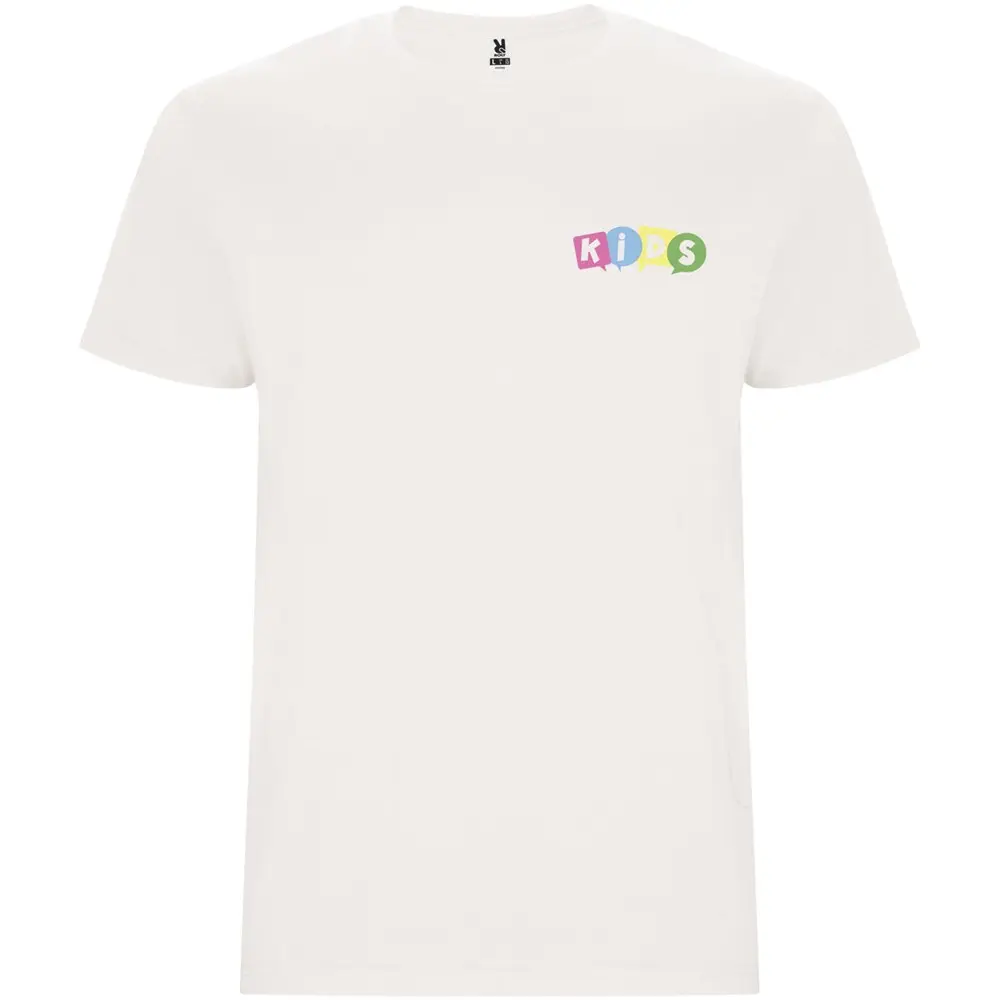 The tubular short-sleeve design ensures a seamless fit without side panels, ideal for active kids. A crew neck with elastane provides gentle stretch for all-day wear, while side seams add durability. The removable label allows seamless integration of your company logo or custom print, making it a top choice for branded giveaways.