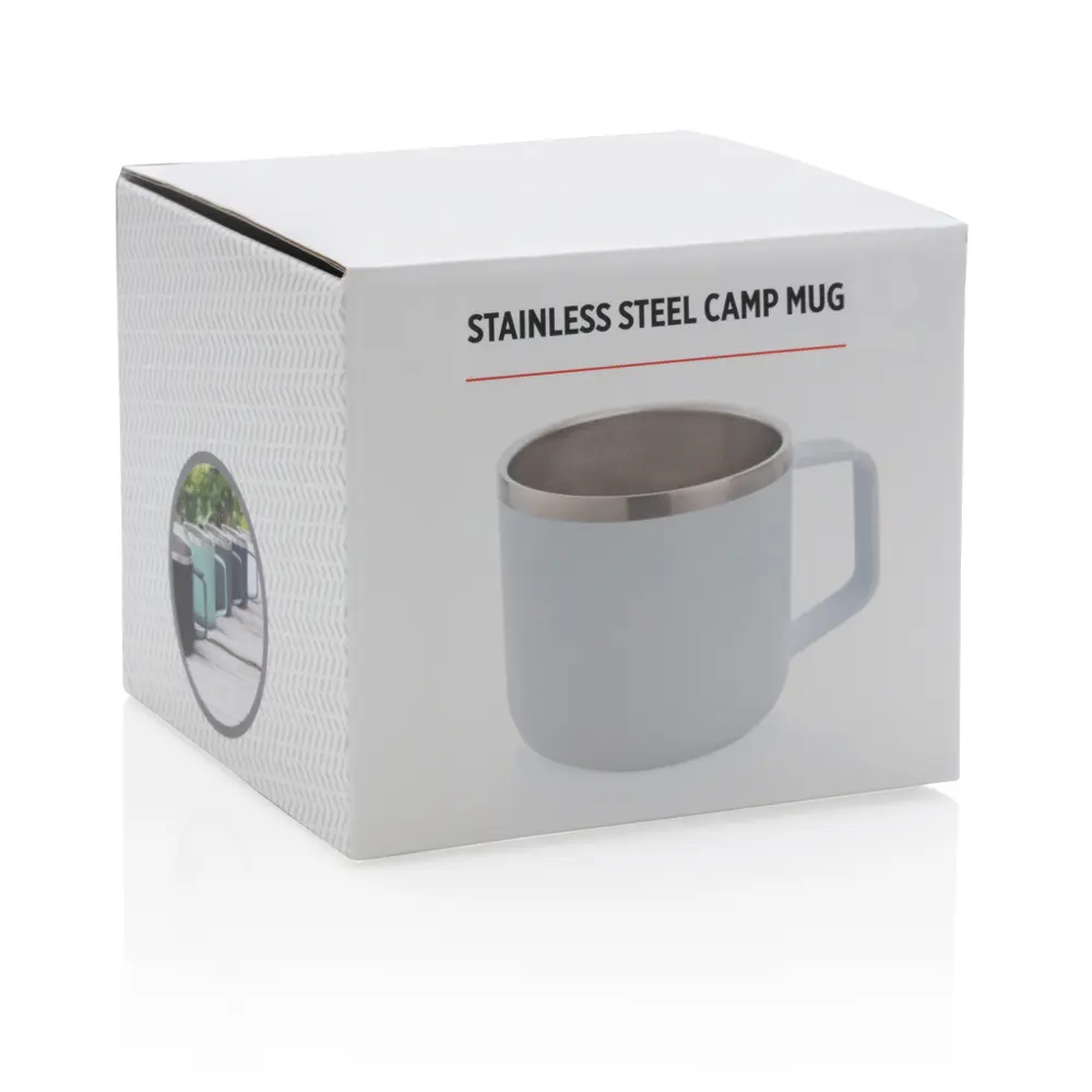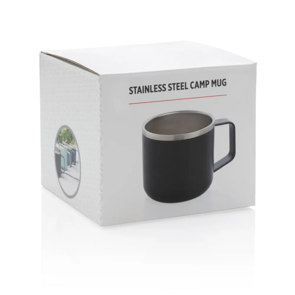 Elevate your brand with our personalized stainless steel camp mug, perfect for promotional giveaways and corporate events. This lightweight, durable double-wall insulated design keeps beverages hot or cold for hours—ideal for on-the-go clients. With a 350ml capacity and BPA-free construction, it ensures safety and style. Customize with your logo for memorable marketing impact, making it a standout choice for event organizers and businesses seeking high-quality, compliant promotional items. Conforms to German Food Safe Legislation, phthalate-free, and free from chlorinated paraffins. Presented in a gift box for easy distribution. Diameter: 83mm.